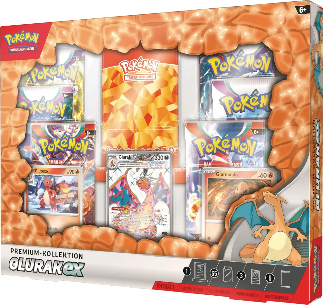 Die Premium-Kollektion Glurak-ex des Pokémon-Sammelkartenspiels enthält: