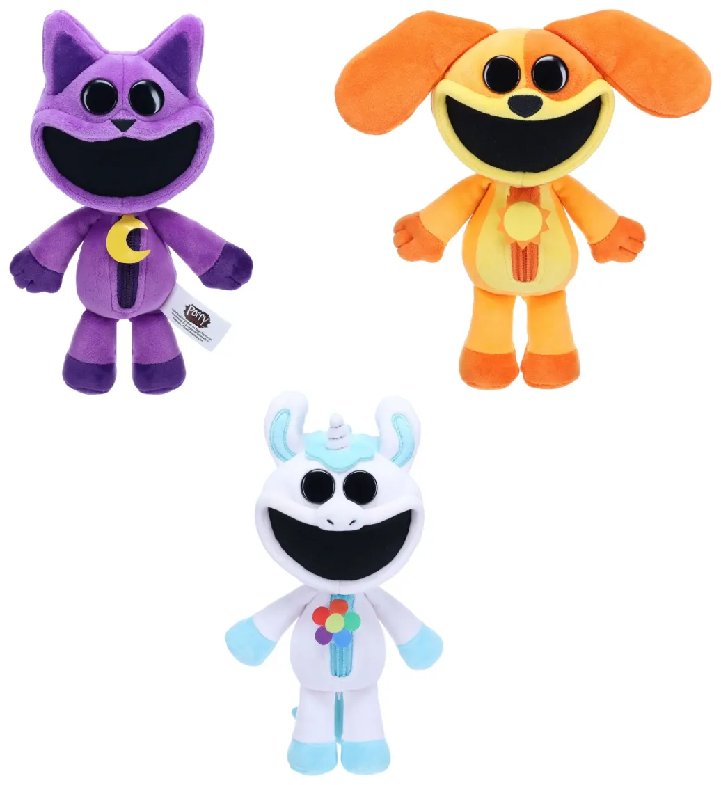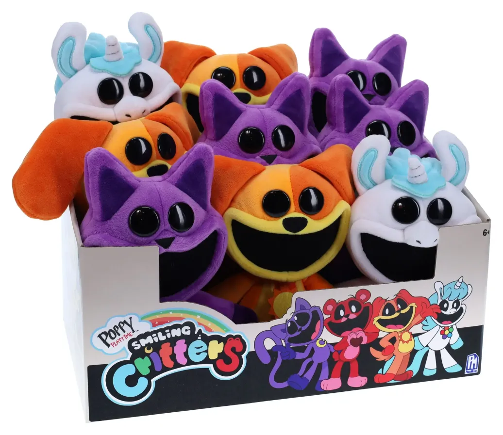 What time is it? Es ist Poppy Playtime! Erweitere Deine Poppy Playtime Plüschkollektion mit den Smiling Critters der S3. Kuschelige Plüschfiguren aus dem Poppy Playtime Spiel, aus hochwertigem und langlebigem Material mit detaillierter Stickerei und lebendigen Farben. Sortiment beinhaltet: Catnap, Dogday, Craftycorn.