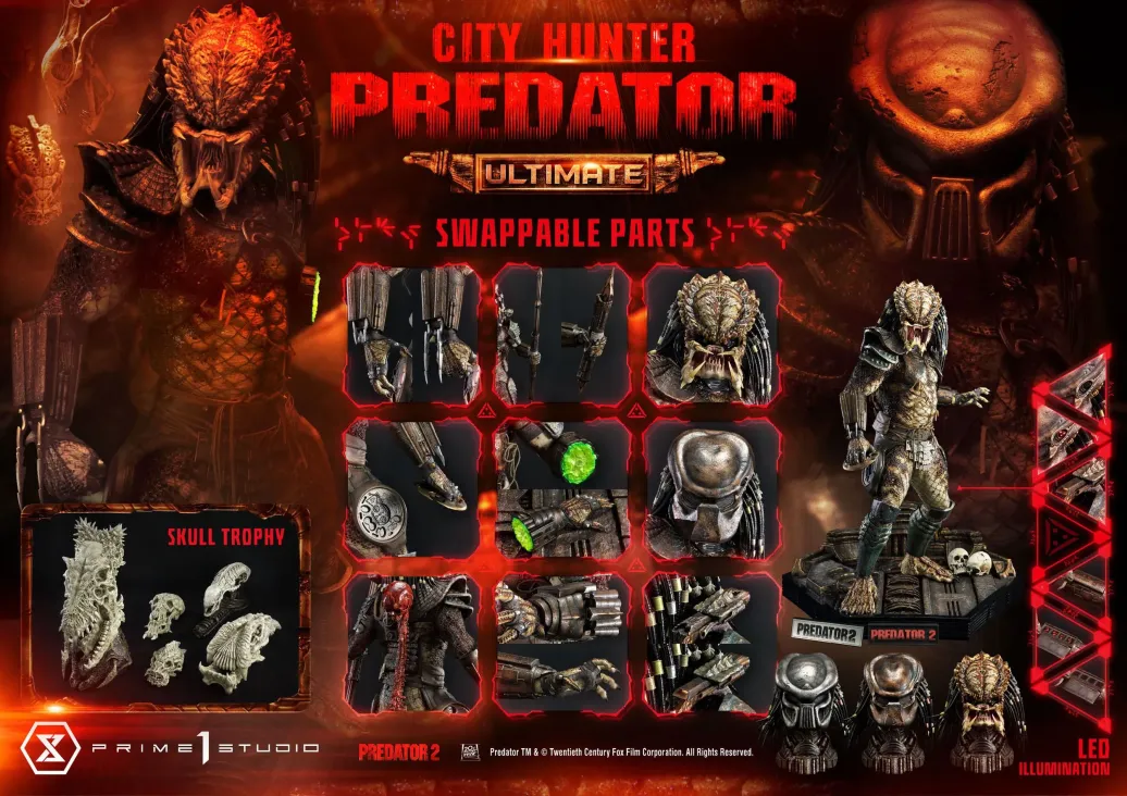 Prime 1 Studio präsentiert diese fantastische Statue aus dem Film "Predator 2". Die im Maßstab 1/3 gehaltene Statue ist ca. 105 x 73 x 68 cm groß und wurde aus hochwertigem Polystone gefertigt. Die Statue verfügt über verschiedene LED-Leuchtfunktionen.