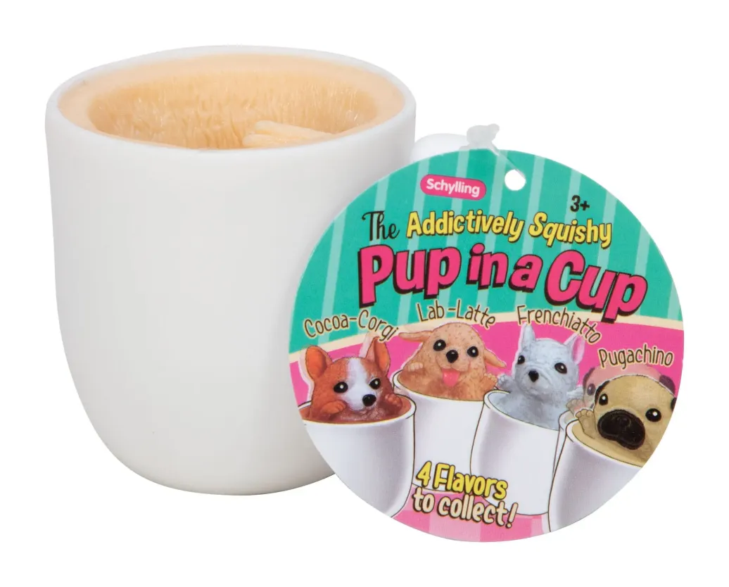 "Pup in a Cup" ist dein neuer squischiger, anspruchsvoller Begleiter! Wenn du diese Espressotassen zusammendrückst, kommen entzückende, kleine Welpen zum Vorschein. Wer hätte gedacht, dass in eine so kleine Tasse so viel Niedliches passen könnte! Erlebe Cocoa Corgi, Lab-Latte, Frenchiatto und Pugachino.