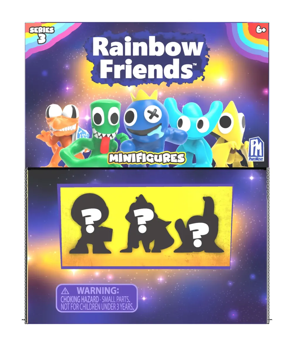 Es ist nie ein normaler Tag, wenn die RAINBOW FRIENDS spielen wollen! Aus dem Roblox-Erfolgsspiel kommen die ca. 6,5 cm großen Rainbow Friends Minifiguren Wave 3. Entdecke die berühmten Freunde, Blue, Cyan und Green mit neuer Pose, sowie 3 seltene Figuren.