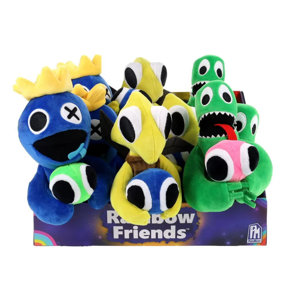 Es ist nie ein normaler Tag, wenn die RAINBOW FRIENDS spielen wollen! Aus dem Roblox-Hit-Spiel kommen nun die ca. 20cm großen Plüschtiere "Rainbow Friends" der Serie 3! Blue, Green und Yellow bestehen aus hochwertigem Stoff und detaillierter Stickerei. Lass diese farbenfrohen, gruseligen Kreaturen noch heute ein Teil deiner Kuschel-Sammlung werden.