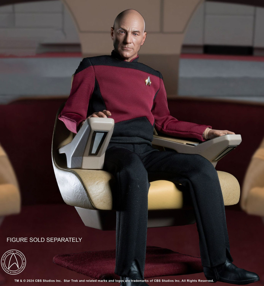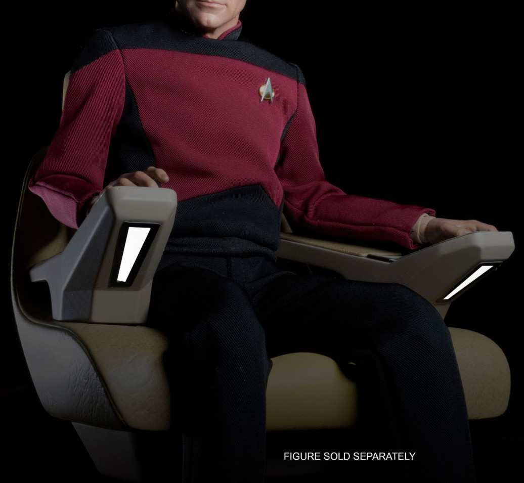 Eine detailgetreue Nachbildung des Captain's Chair aus der Enterprise D, zu sehen in der Serie "Raumschiff Enterprise - Das nächste Jahrhundert ". Die Replik im Maßstab 1:6 verfügt über verschiedene Licht- und Soundfunktionen (Stromversorgung über USB-C-Kabel, nicht enthalten) und ist ca. 19 cm