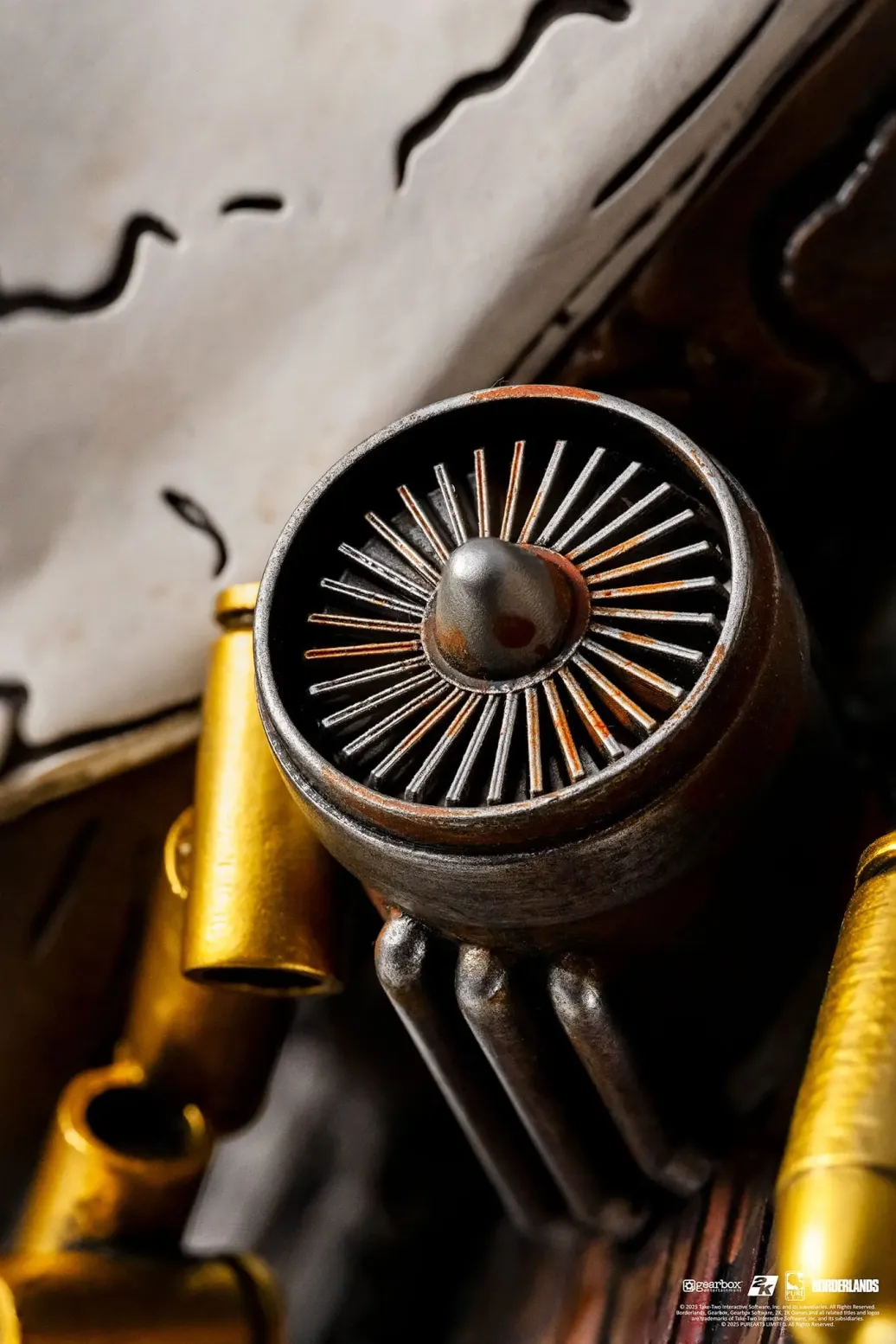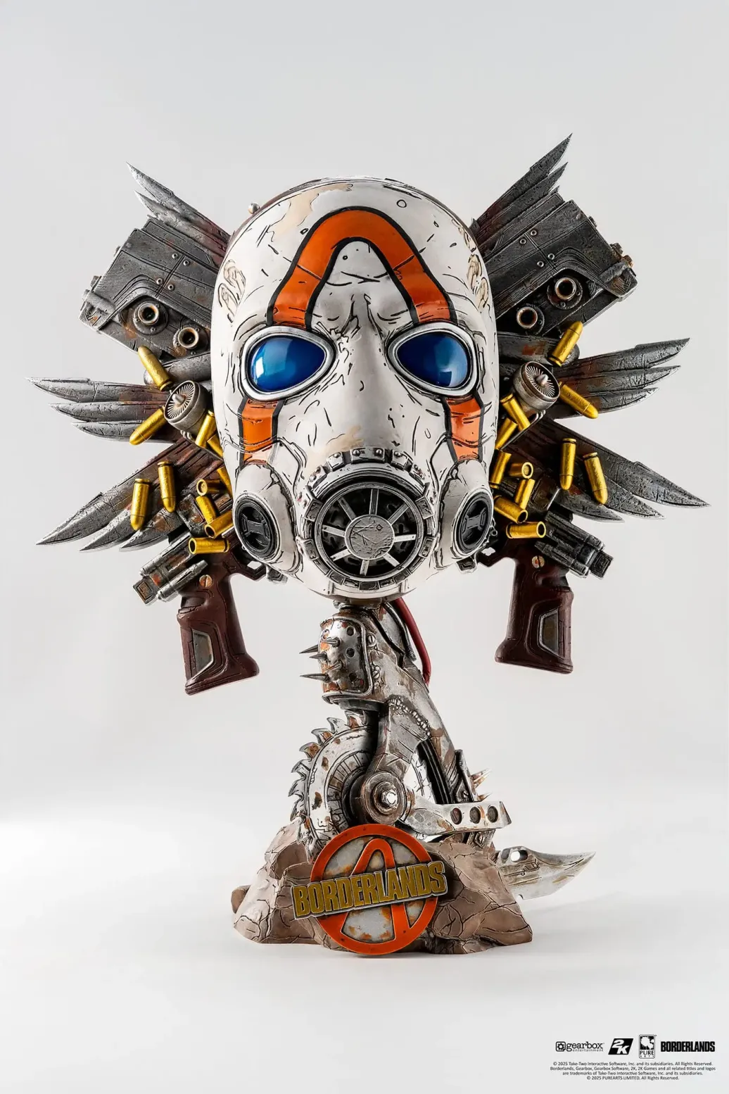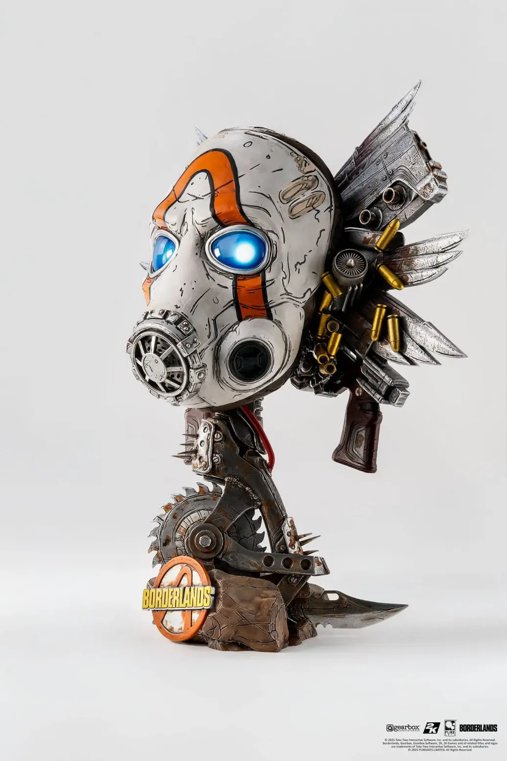 Zur "Borderlands"-Reihe kommt diese atemberaubende Replik im Maßstab 1/1. Das aus Resin und Selikon hergestellte Sammlerstück verfügt über eine LED Leuchtfunktion und ist ca. 46 cm groß.