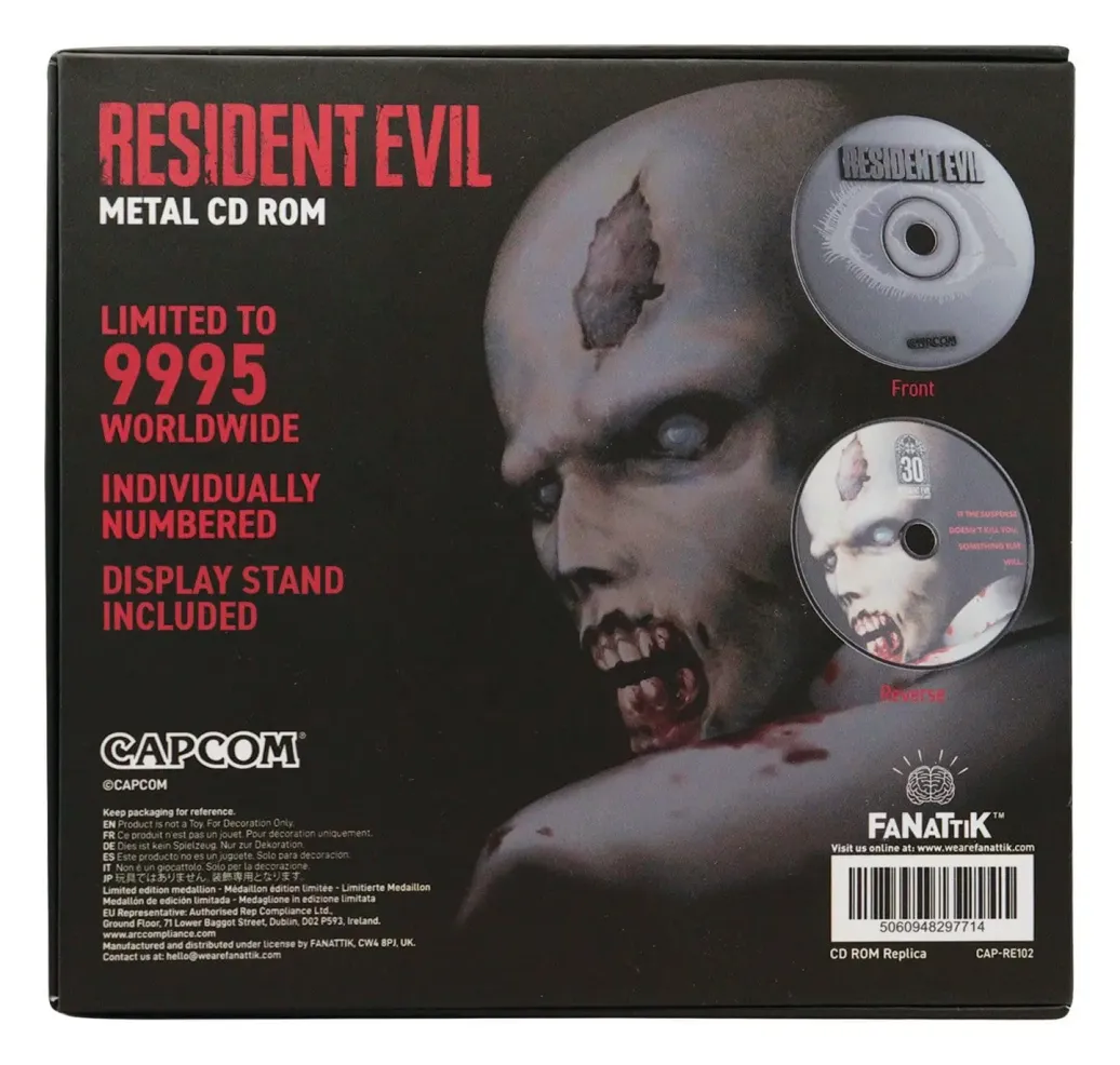 Treten Sie mit dieser 30th Anniversary Limited Edition Resident Evil Metall-CD-ROM-Replik zurück in die Welt des Survival-Horrors! Dieses besondere Sammlerstück, gestaltet mit retro-inspirierten Kunstwerken und so veredelt, dass es die klassische Spiel-CD nachahmt, wird in einer Hülle im PS1-Stil mit einer zusätzlichen aufklappbaren Kartonbox geliefert.