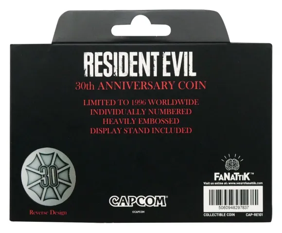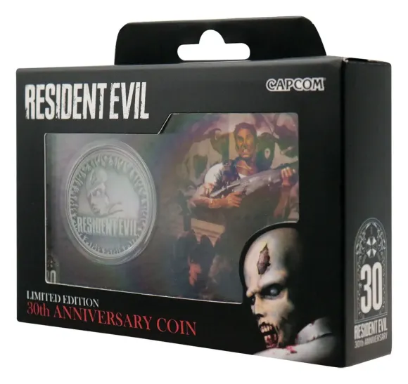 Feiern Sie 30 Jahre Resident Evil mit dieser offiziell lizenzierten, limitierten Präsentationsmünze, die zu Ehren einer der einflussreichsten Survival-Horror-Franchises der Spielegeschichte geschaffen wurde. Weltweit auf 1.996 Stück limitiert, als Hommage an das ursprüngliche Erscheinungsjahr, ist jede Münze auf der Rückseite einzeln nummeriert und verfügt über ein stark geprägtes Design, das wichtige Jubiläumsgrafiken zeigt, die von der originalen CD-ROM inspiriert sind.