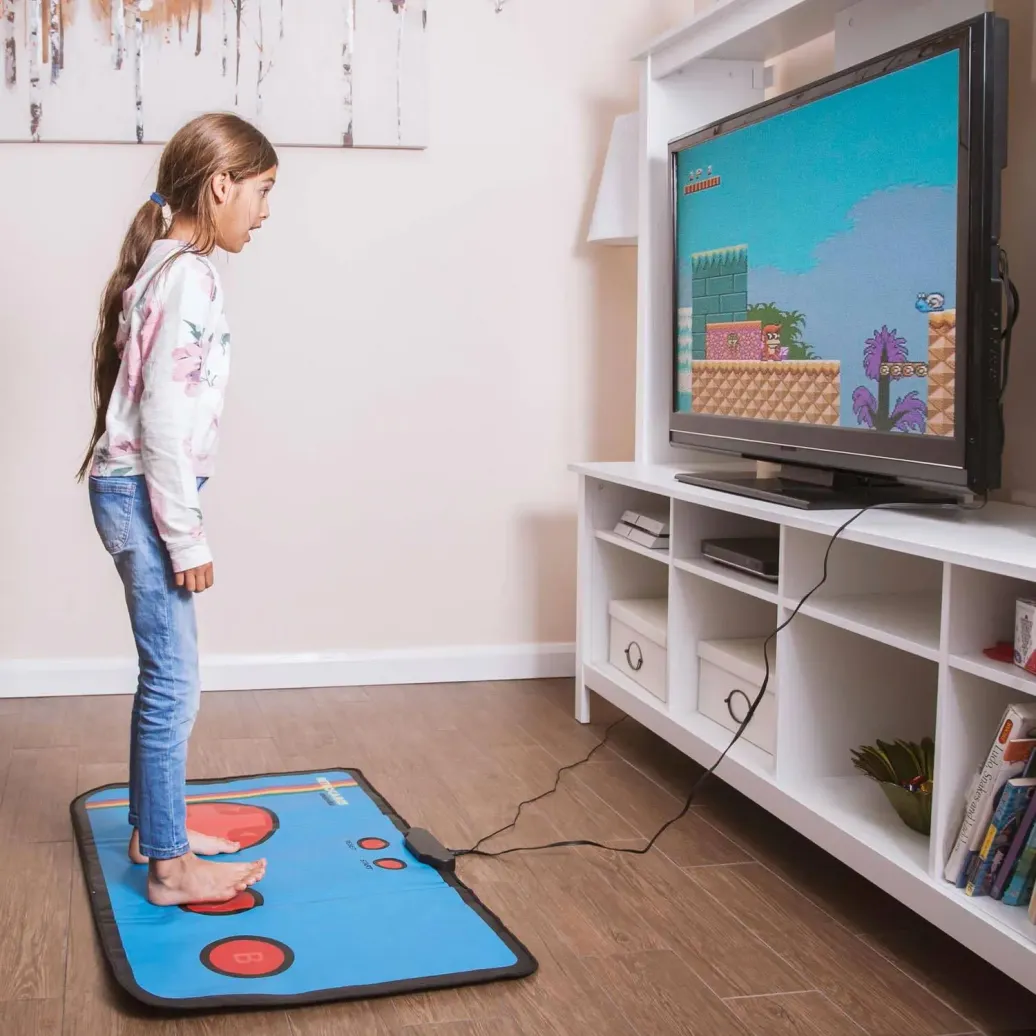 Zurück in die Zukunft - mit der Retro Gaming Matte! Kombiniert das Design eines 80er Jahre Retro-Controllers mit dem simplen Plug-and-Play, das du von heutigen System gewöhnt bist. Schließe die Retro Gaming Matte einfach per Cinch-Kabel an deinen Fernseher an, wähle eines der 140 integrierten 8-Bit Retro Spiele aus (u.a. Schieß-, Arkade-, Puzzle- und Sportbasierte Spiele) und erlebe endlose Stunden voller Aktion und Spaß. Ob Alleine, mit deiner Familie oder Freunden - in der riesigen Spielesammlung ist garantiert für jeden das passende Retro-Spiel dabei.