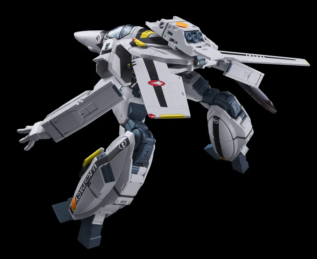 Zu "Robotech" kommt diese detailreiche Actionfigur aus Metall. Sie ist ca. 21 cm groß und wird mit weiterem Zubehör und Austauschteilen in einer bedruckten Box geliefert.