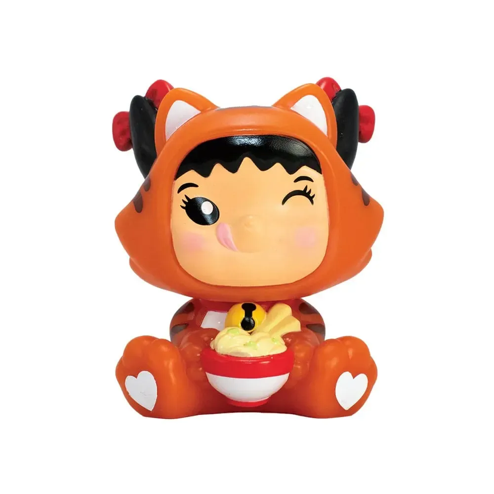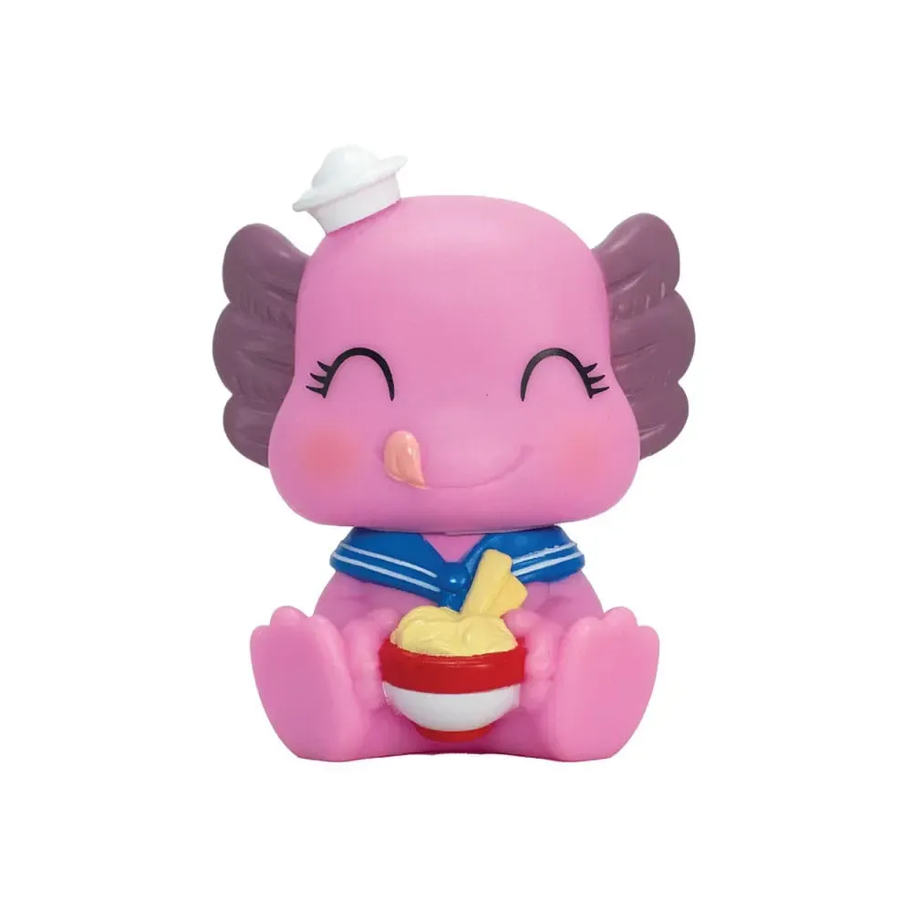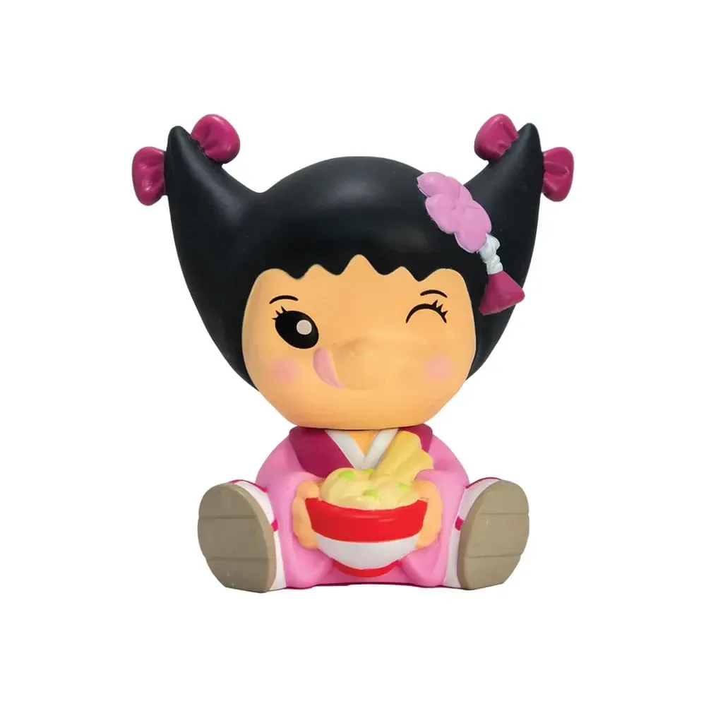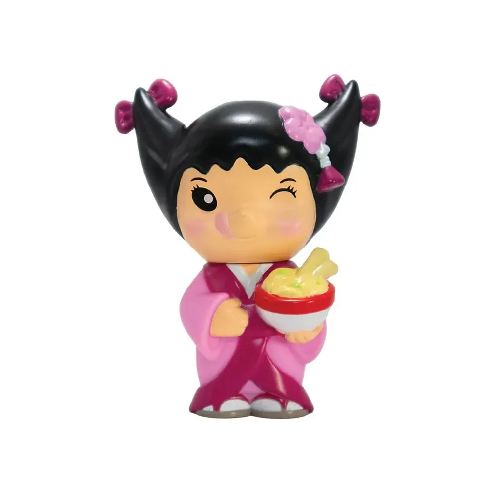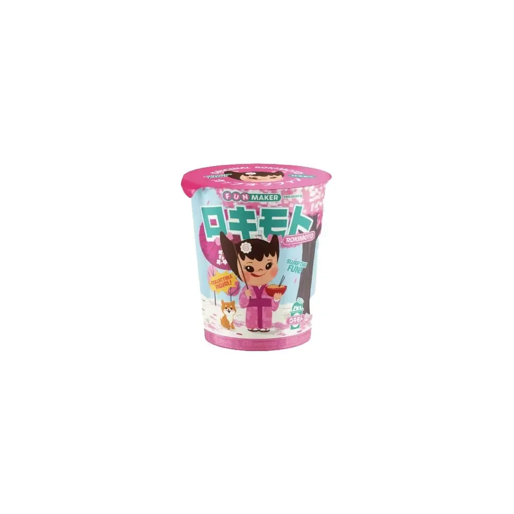 Display mit 12 Blind Boxen mit je einer Minifigur aus PVC. Die Figuren sind ca. 10 cm groß. Die Verpackungen sind japanischen Ramen-Nudeln-Bechern nachempfunden.