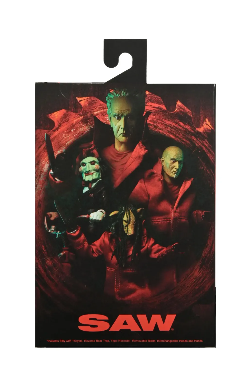 Aus NECAs Figuren-Reihe kommt diese coole Actionfigur aus dem Film "Saw". Sie ist ca. 18 cm groß und wird mit jeder Menge Zubehör und Austauschteilen in einer Fensterbox geliefert.