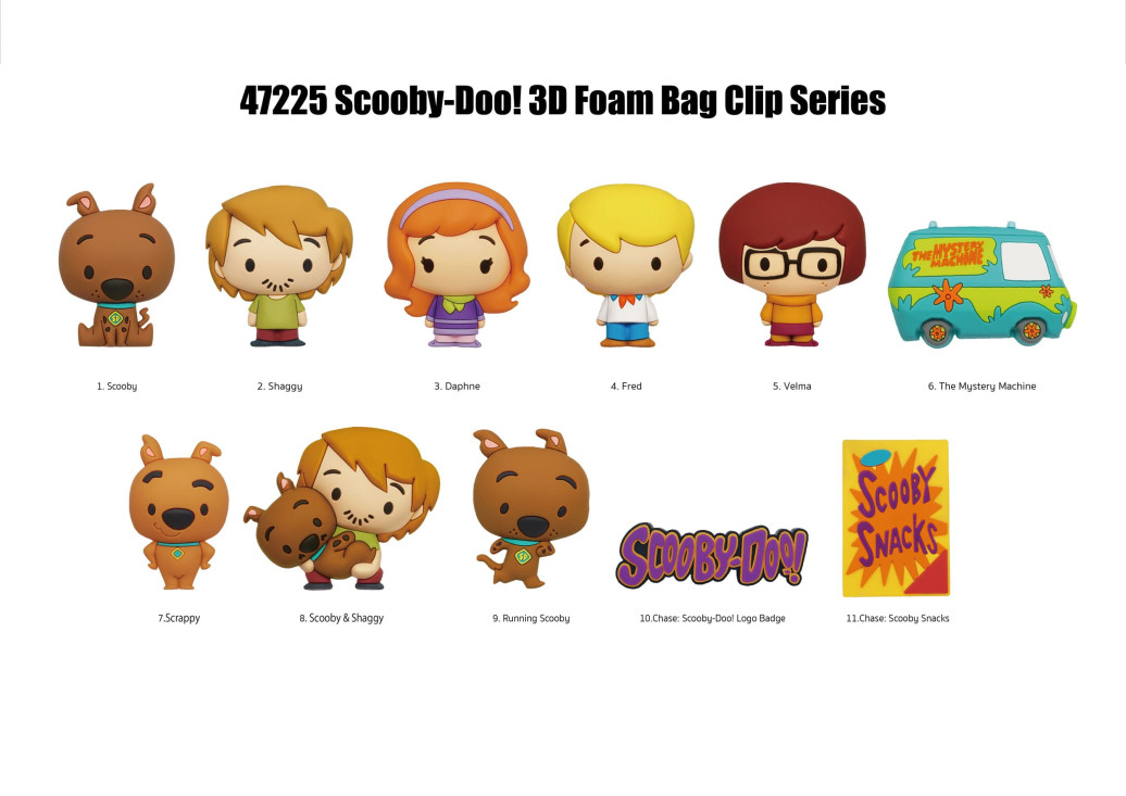 Display mit 24 Blind Bags mit je einem offiziell lizenzierten Taschenanhänger aus PVC.