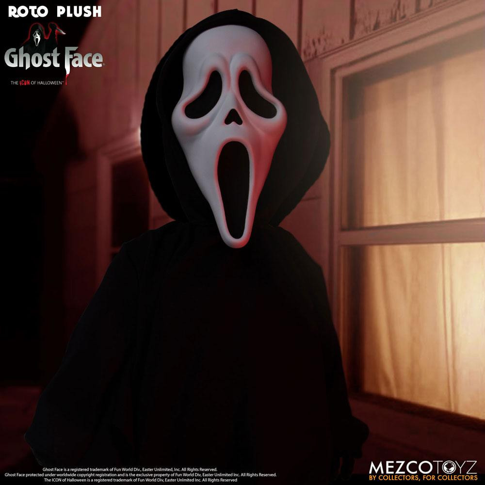 Mezco präsentiert diese gruselige Puppe von Ghost Face. Die Plüschfigur ist ca. 46 cm groß und kommt in einer Fensterverpackung geliefert.