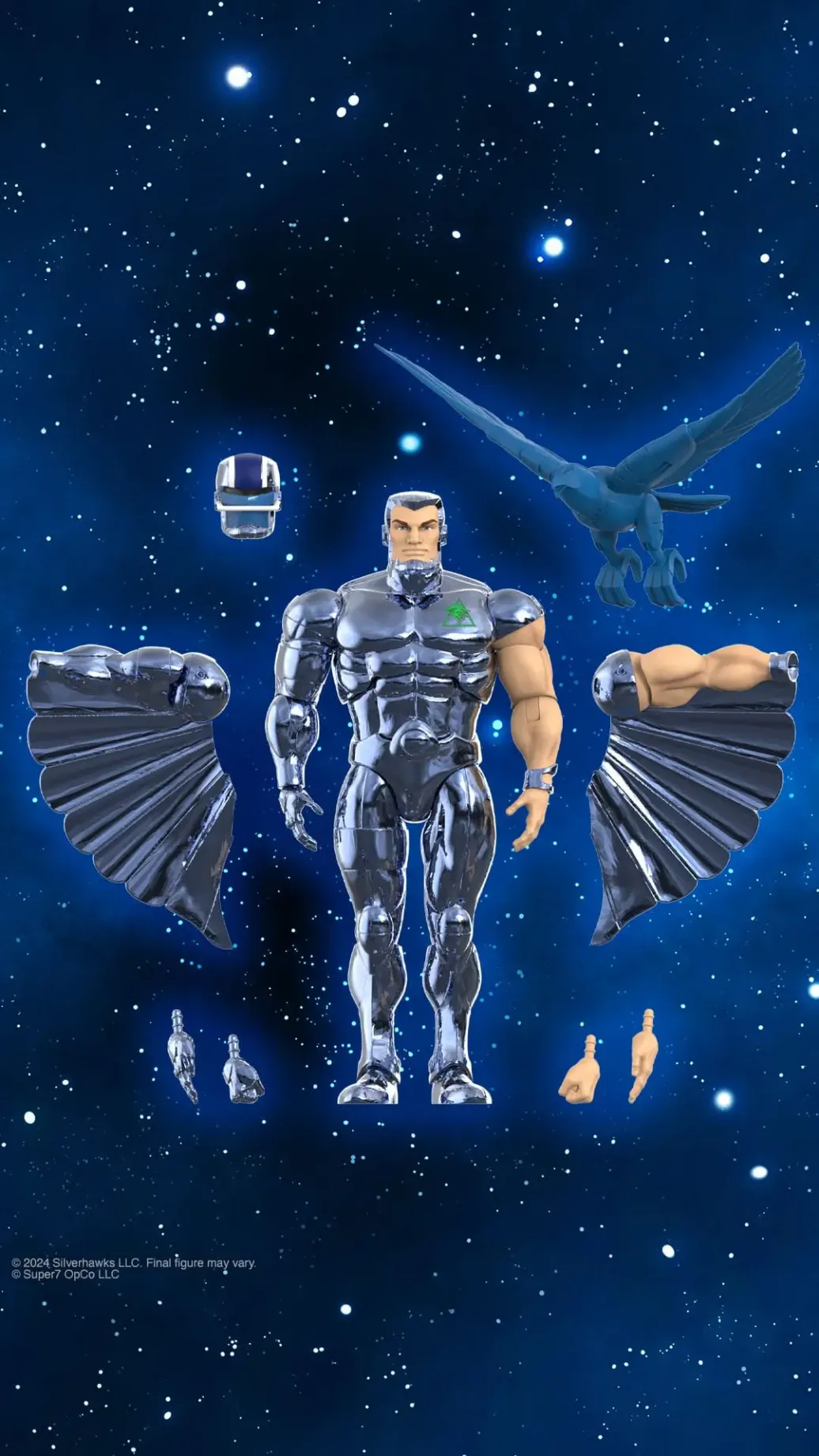Aus Super7's "SilverHawks" Kollektion kommt diese voll bewegliche Actionfigur. Sie ist ca. 18 cm groß und wird mit weiterem Zubehör und Austauschteilen in einer Fensterbox geliefert.