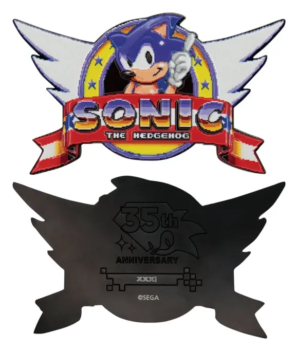 Veröffentlicht auf dem Sega Mega Drive (oder Genesis für unsere nordamerikanischen Freunde) am 21. Juni 1991, wurde das ursprüngliche Sonic the Hedgehog-Spiel schnell zu einem der größten Spiele aller Zeiten und verkaufte mehr als 40 Millionen Exemplare. Dieses limitierte Medaillon in Form des Logos aus dem ersten Spiel misst 5 x 8 cm und ist weltweit auf 5.000 Stück limitiert.