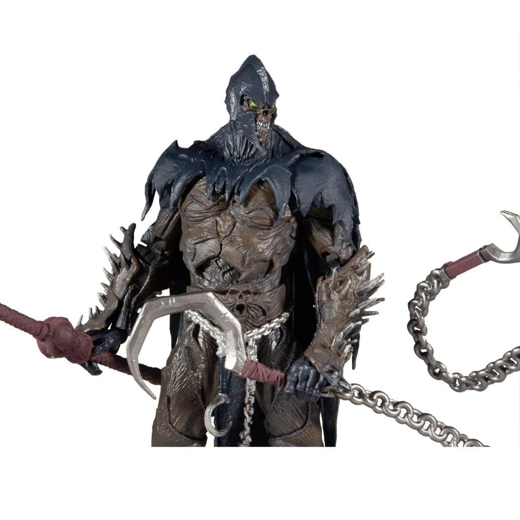 Zum Comic Spawn kommt diese detailreiche, bewegliche Actionfigur. Sie ist ca. 18 cm groß und wird mit weiterem Zubehör und Base in einer Fensterbox geliefert.