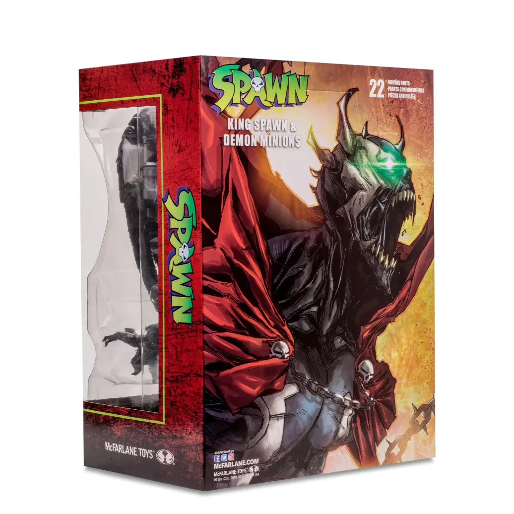 Zum Comic "Spawn" kommt diese detailreiche, bewegliche Actionfigur. Sie ist ca. 30 cm groß und wird mit weiterem Zubehör und Base in einer Fensterbox geliefert.