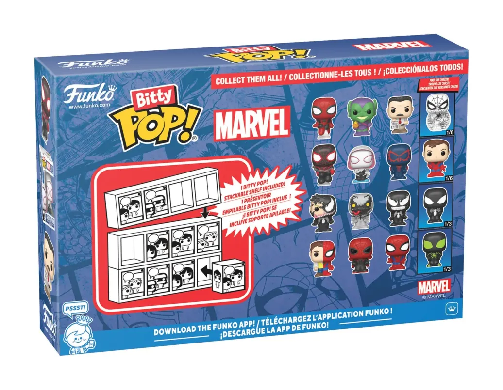 Aus Funkos 'Bitty POP!'-Reihe kommt dieser Pack mit 4 Mini-POP!-Figuren aus Vinyl. Jede ist ca. 2 cm groß und kommt mit eigener Verpackung aus Acryl im gewohnten POP!-Design. Mit dabei ist ein passendes, stapelbares Display, in dem alle vier Figuren Platz finden.