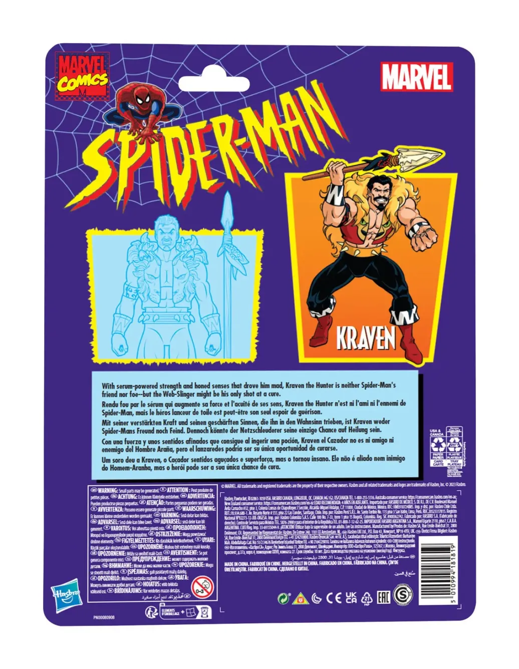 Diese 15 cm große Marvel Legends Sammelfigur kommt im Look von Kraven dem Jäger aus der Animationsserie New Spider-Man aus 1994 mit einem Premium-Design, mehreren Bewegungspunkten und einem Speer als Accessoire.