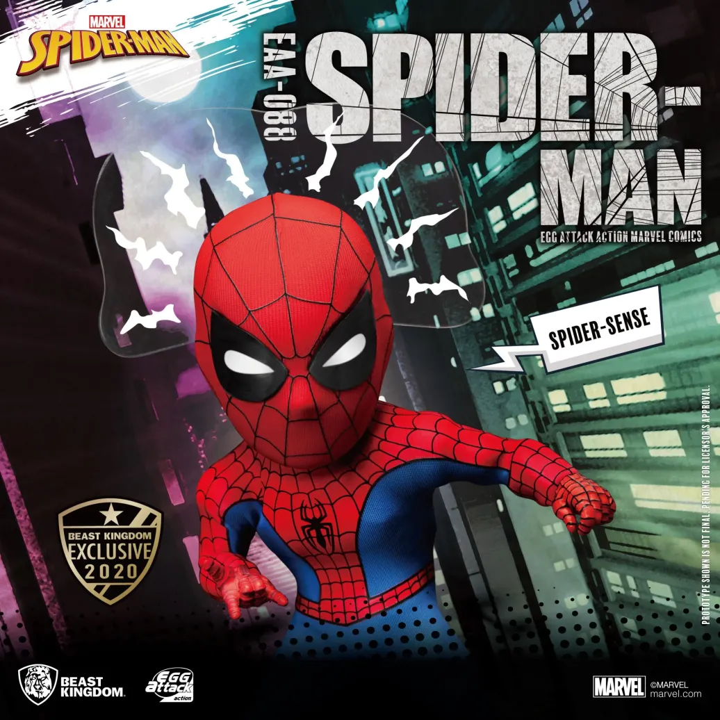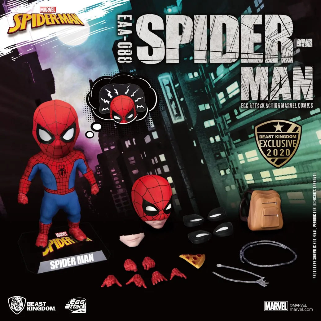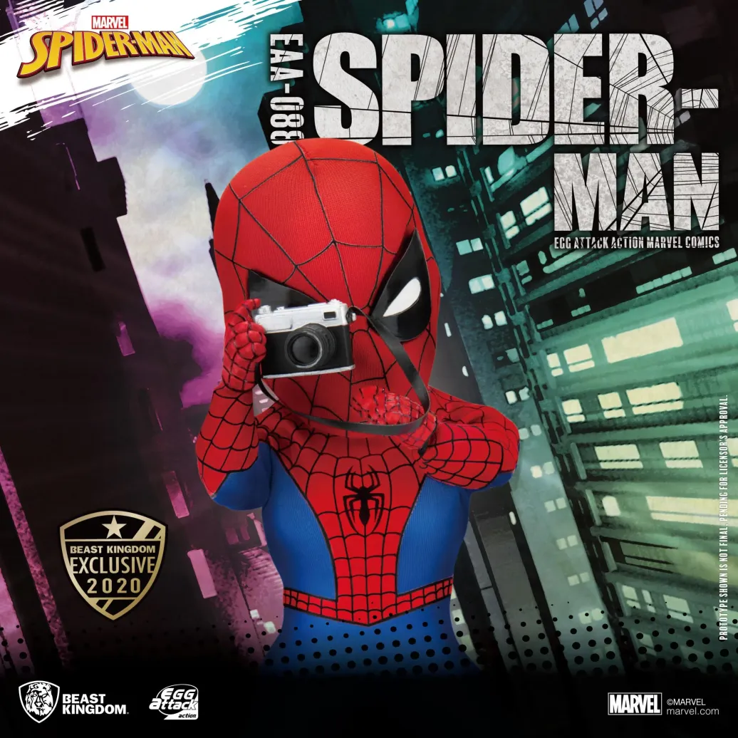 Aus dem Marvel Universum kommt diese detailreiche Spider-Man Peter Parker Actionfigur aus der Egg Attack Action Serie von Beast Kingdom Toys. Sie ist ca. 16 cm groß und wird mit jeder Menge Zubehör sowie Austauschteilen in einer Fensterbox geliefert.