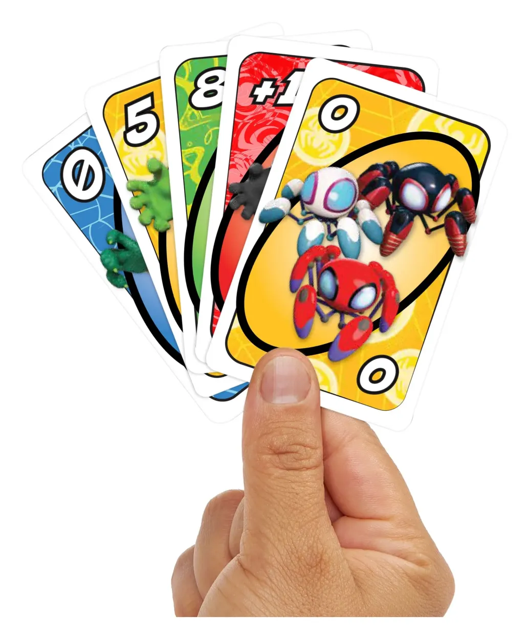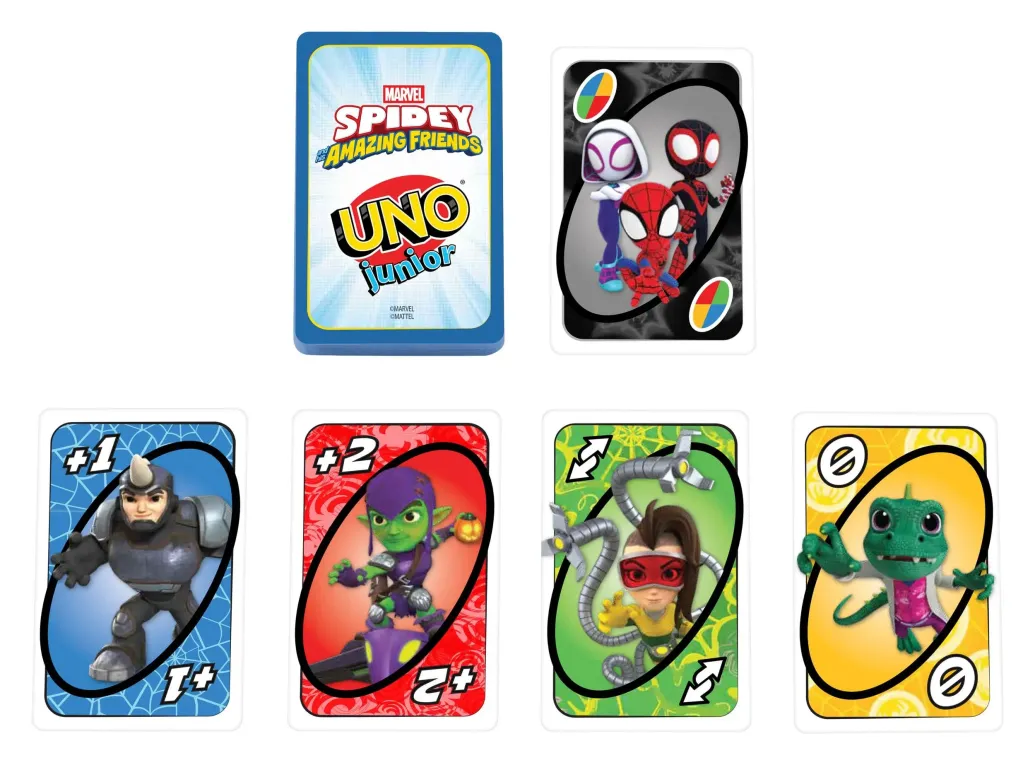 UNO Junior trifft auf Spidey und seine Super-Freunde! Dieses kinderfreundliche Kartenspiel ist perfekt für 2-4 Spieler ab 3 Jahren und hilft den Kleinsten, spielerisch Farben und Zahlen zu lernen. Mit den beliebten Charakteren aus der Serie wird der Spieleabend zu einem echten Superhelden-Abenteuer.