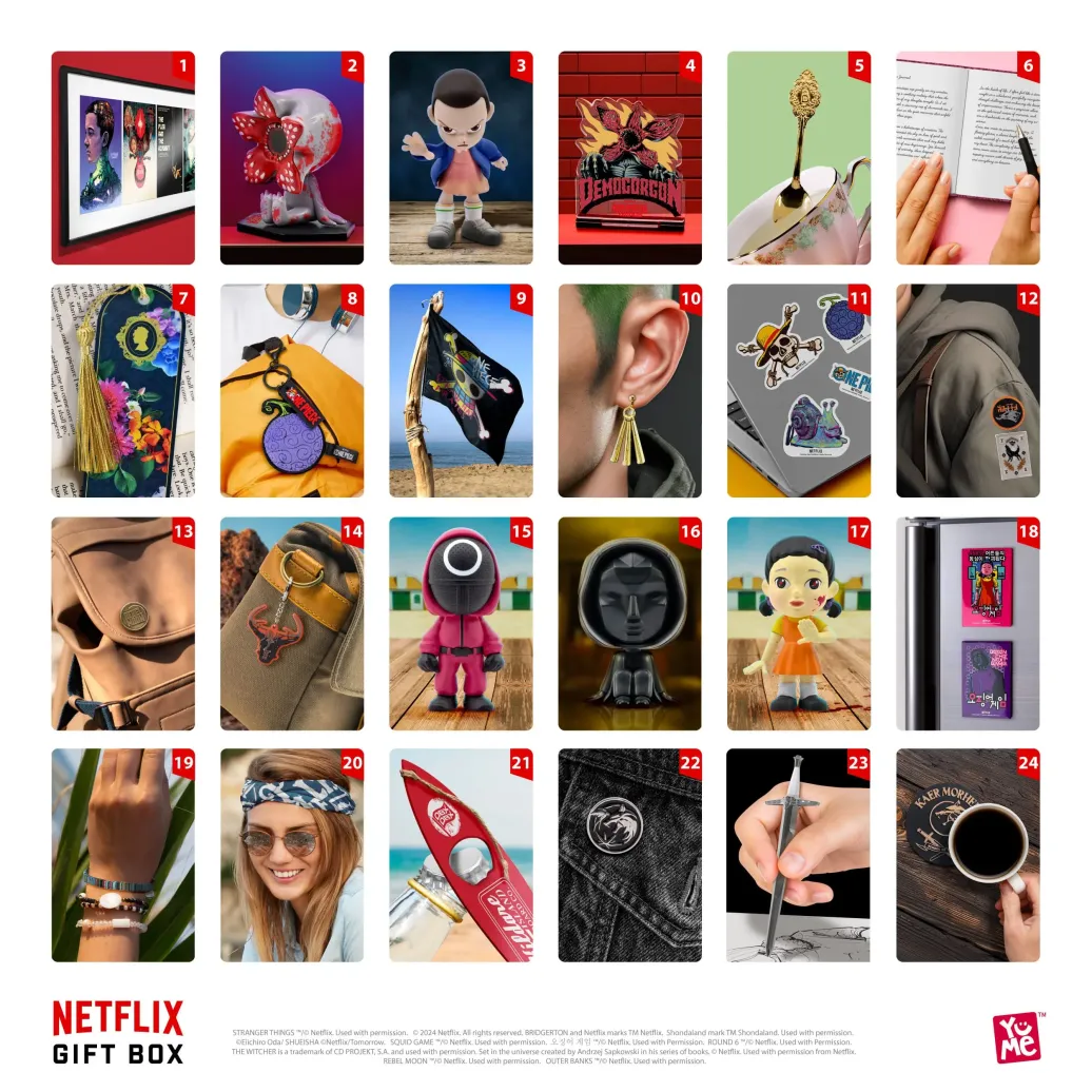 - 24 PREMIUM-ITEMS IM INNEREN - Die 24 nummerierten Innenfächer spiegeln die kultige Netflix-Oberfläche wider und jedes Überraschungsgeschenk wartet darauf, Sie und Ihre Lieben zu erfreuen.