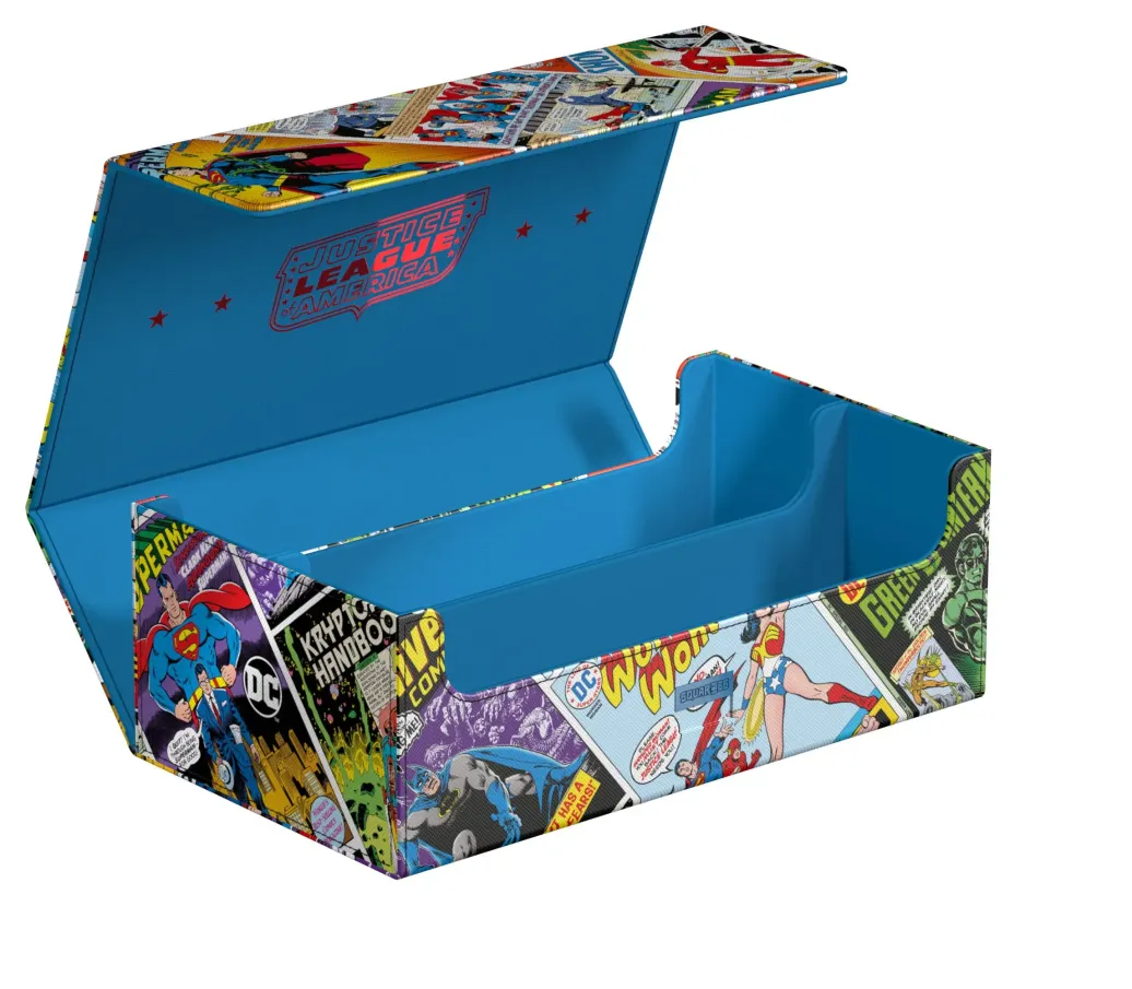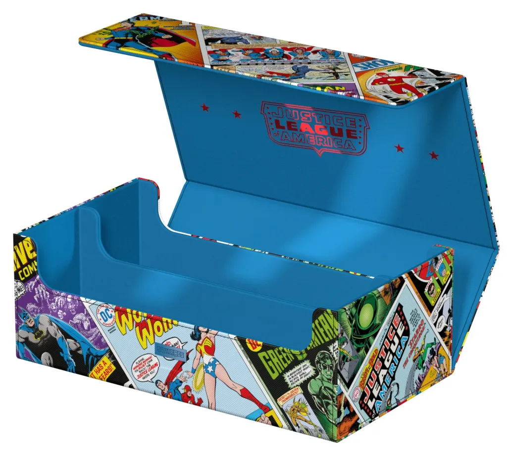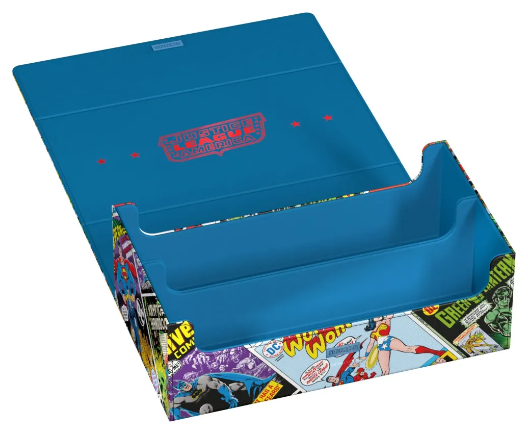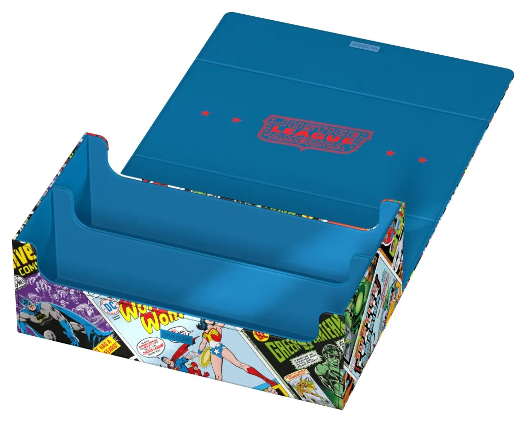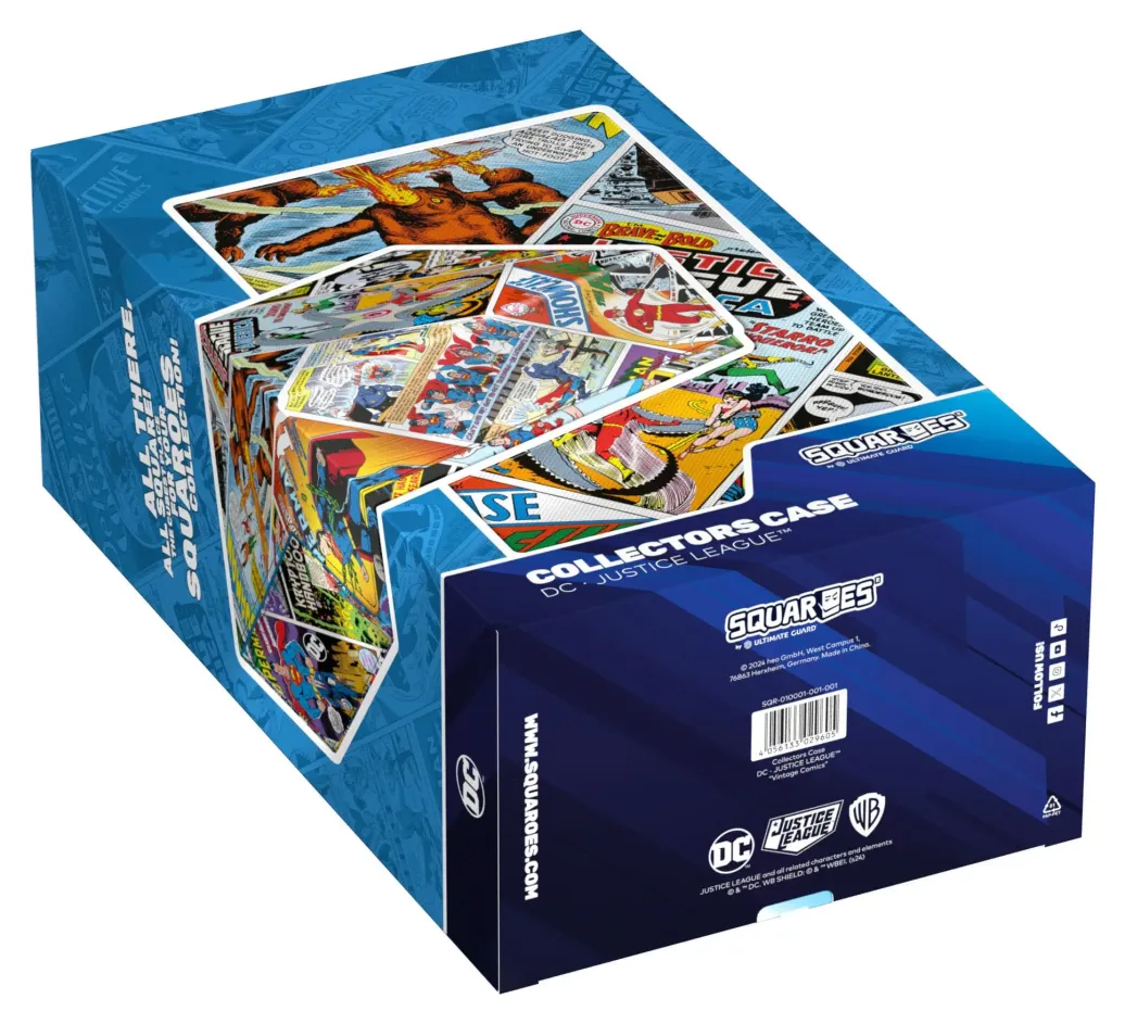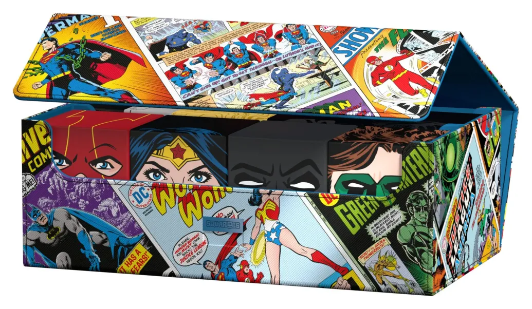 Die perfekte Aufbewahrungsbox für TCG-Decks und Sammelkarten trifft auf legendäre Comics aus dem DC-Universum! Das Collectors Case ist das perfekte Zuhause für bis zu acht Squaroes aus unserer DC Justice League™-Serie. Doch natürlich müssen es nicht zwingend Batman, Wonder Woman & Co. sein: Auch zur Aufbewahrung anderer Deck-Boxen, einzelner Sammelkarten (bis zu 1000 Stück in doppelter Schutzhülle) oder Gaming-Zubehör aller Art eignet sich das Collectors Case im einzigartigen Vintage-Comic-Design. Das vollfarbig bedruckte, widerstandsfähige Xenoskin-Material sowie der starke Magnetverschluss mit ZnapClaw-Mechanismus sorgen zudem dafür, dass alle Inhalte sicher verwahrt sind.