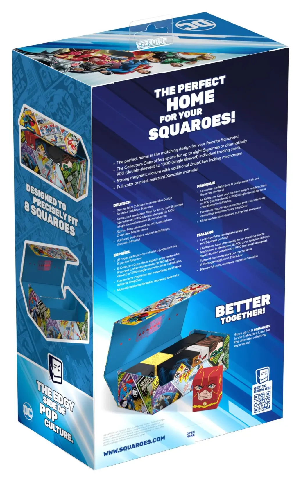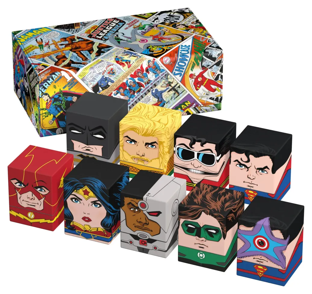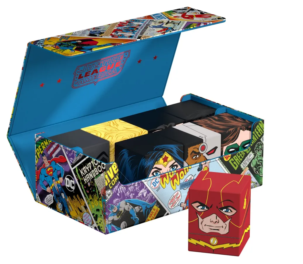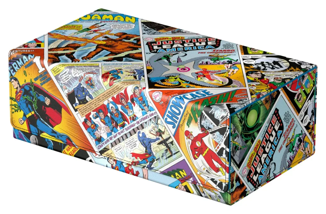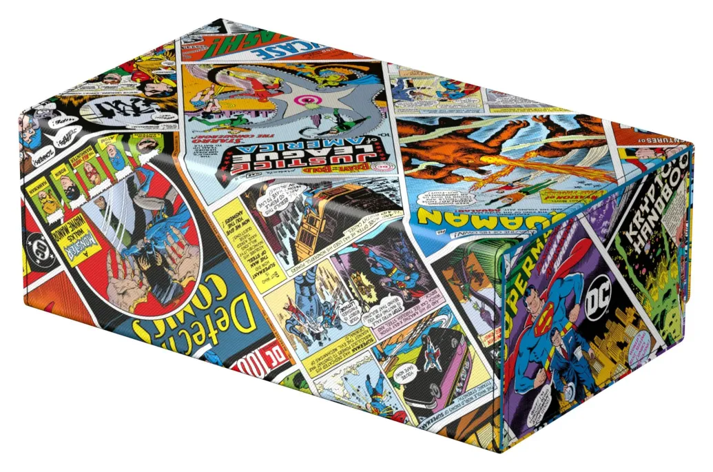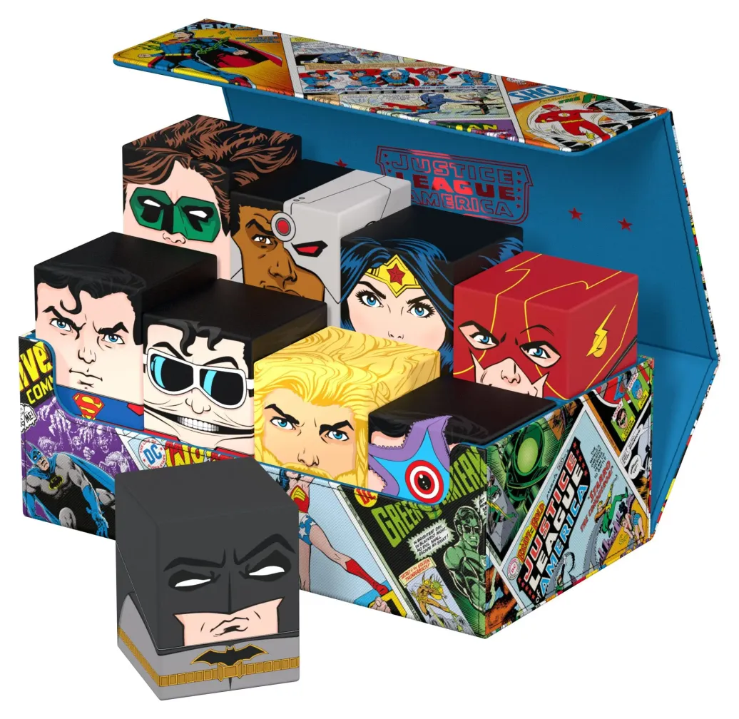 Die perfekte Aufbewahrungsbox für TCG-Decks und Sammelkarten trifft auf legendäre Comics aus dem DC-Universum! Das Collectors Case ist das perfekte Zuhause für bis zu acht Squaroes aus unserer DC Justice League™-Serie. Doch natürlich müssen es nicht zwingend Batman, Wonder Woman & Co. sein: Auch zur Aufbewahrung anderer Deck-Boxen, einzelner Sammelkarten (bis zu 1000 Stück in doppelter Schutzhülle) oder Gaming-Zubehör aller Art eignet sich das Collectors Case im einzigartigen Vintage-Comic-Design. Das vollfarbig bedruckte, widerstandsfähige Xenoskin-Material sowie der starke Magnetverschluss mit ZnapClaw-Mechanismus sorgen zudem dafür, dass alle Inhalte sicher verwahrt sind.