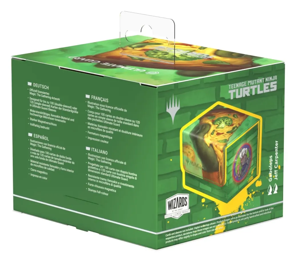 Der Sidewinder 100+ Xenoskin von Ultimate Guard ist eine Premium-Deckbox für Magic: The Gathering, die dank ihres widerstandsfähigen Xenoskin-Materials, der hochwertigen Mikrofaserinnenseite und eines starken Magnetverschlusses herausragenden Kartenschutz garantiert — und gleichzeitig einen einfachen und bequemen Zugriff auf die Karten im Inneren ermöglicht. Mit Platz für 100 doppelt gesleevte Karten (in Ultimate Guard-Hüllen*) und bedruckt mit offiziell lizenzierten Artworks aus dem "Magic: The Gathering | Teenage Mutant Ninja Turtles"-Set ist der Sidewinder 100+ Xenoskin die perfekte MTG-Deckbox für alle Magic-Formate (Commander/EDH, Modern, Standard, usw.). Kombinierbar mit Omnihive-, Superhive- und Smarthive-Boxen von Ultimate Guard.