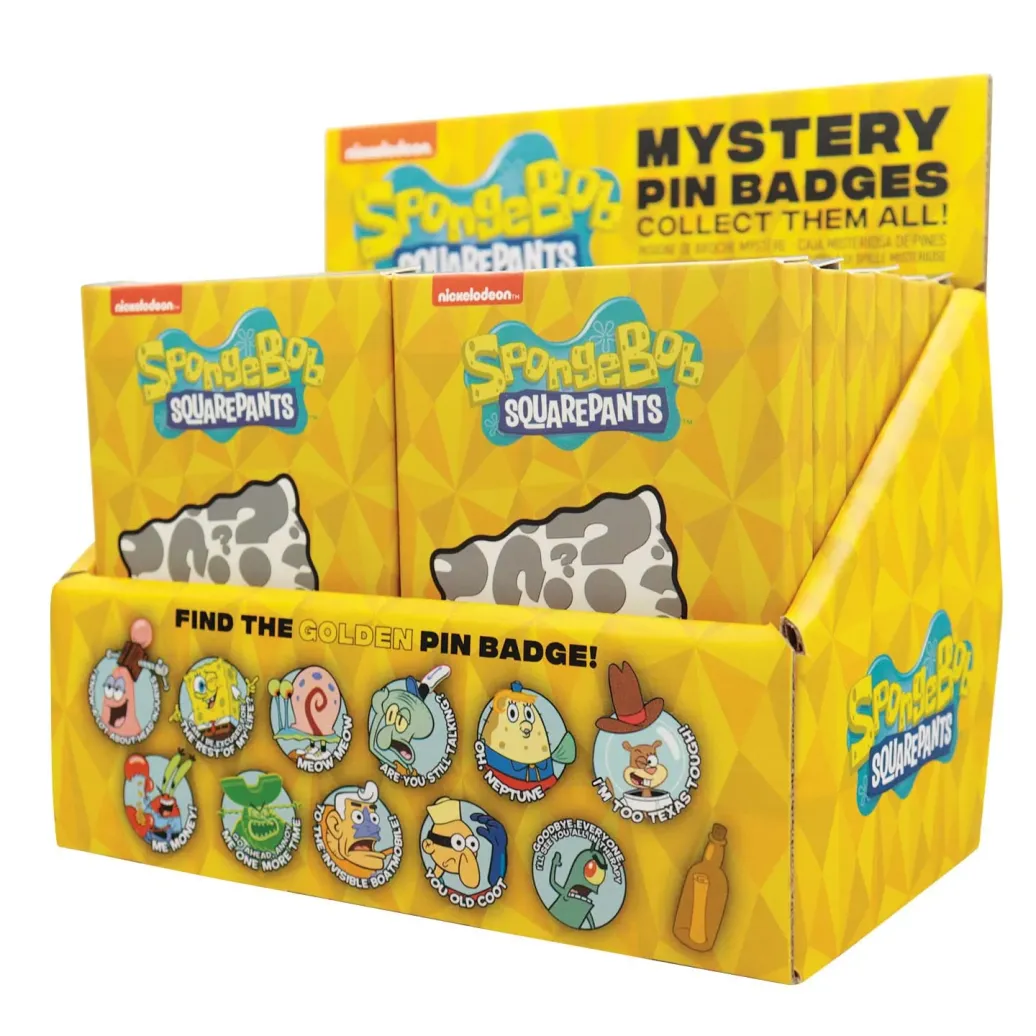 Display mit 12 offiziell lizenzierten Ansteck-Pins aus Metall (Zinklegierung). Jeder Button ist einzeln in einer Blindbox verpackt. Jedes Display enthält einen goldenen Pin.