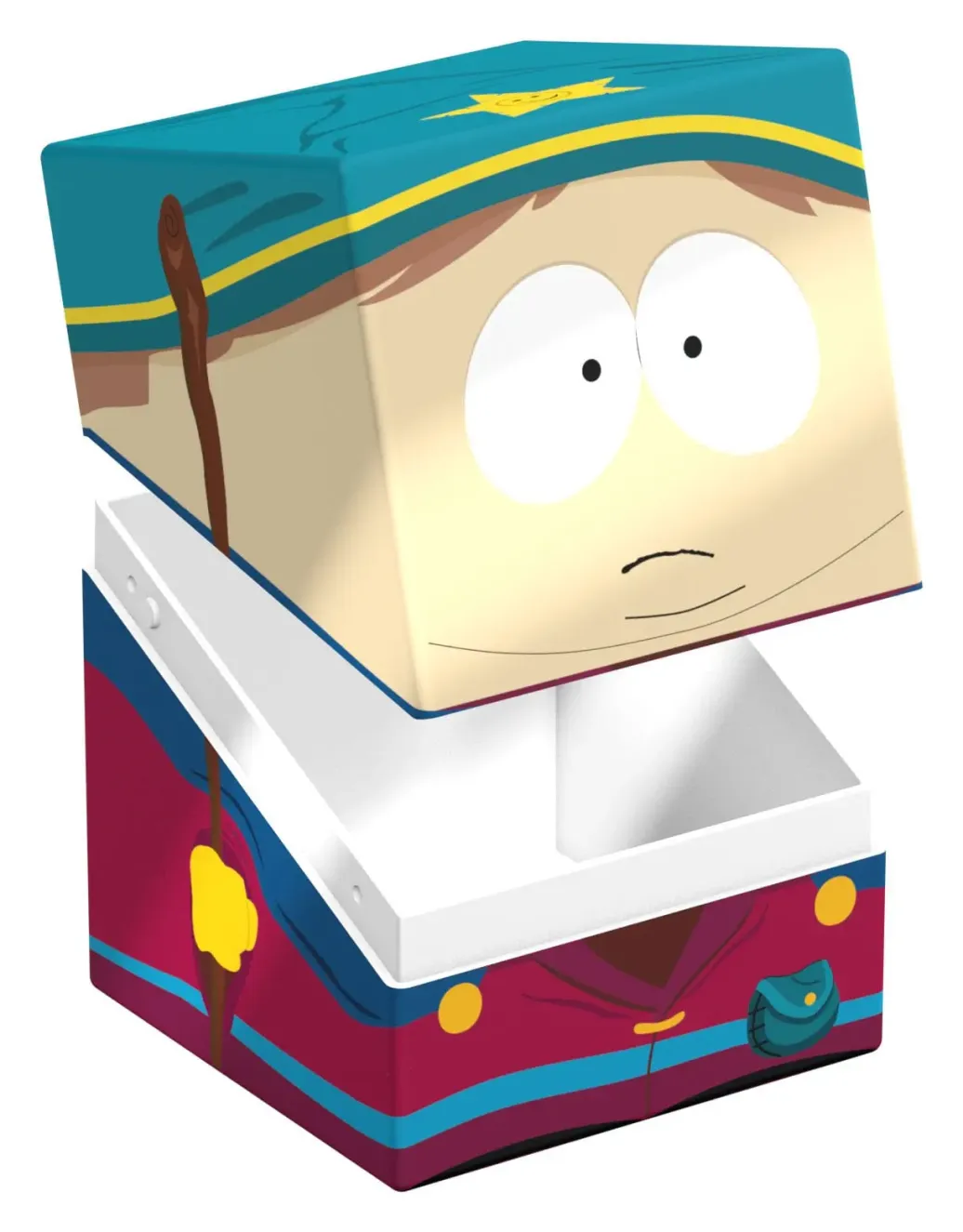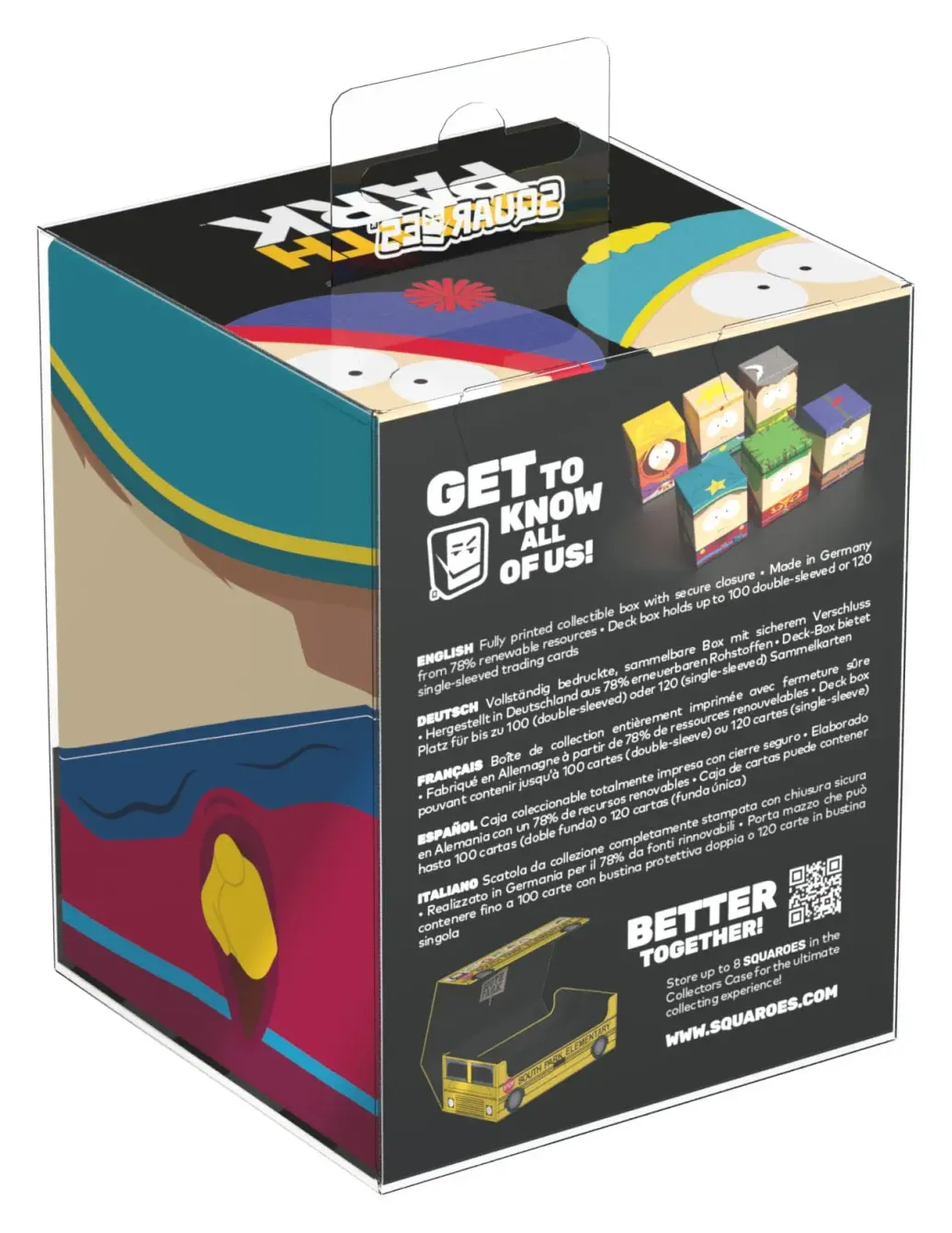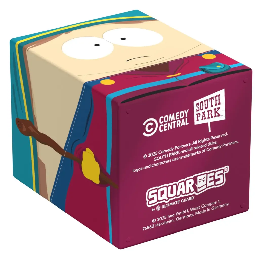 Sammelbare Box zur Aufbewahrung von TCG-Decks, Tabletop-Zubehör und/oder Sammlerstücken. Jeder Squaroe aus der South Park™-Edition bietet als Deck-Box benutzt Platz für bis zu 100 Spielkarten in doppelter Schutzhülle. Squaroes werden aus 78% erneuerbaren Rohstoffen hergestellt und passen perfekt in das separat erhältliche Collectors Case.