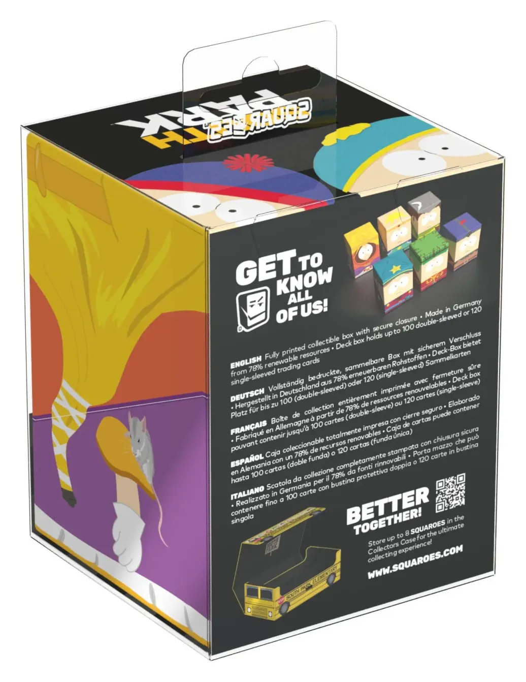 Sammelbare Box zur Aufbewahrung von TCG-Decks, Tabletop-Zubehör und/oder Sammlerstücken. Jeder Squaroe aus der South Park™-Edition bietet als Deck-Box benutzt Platz für bis zu 100 Spielkarten in doppelter Schutzhülle. Squaroes werden aus 78% erneuerbaren Rohstoffen hergestellt und passen perfekt in das separat erhältliche Collectors Case.