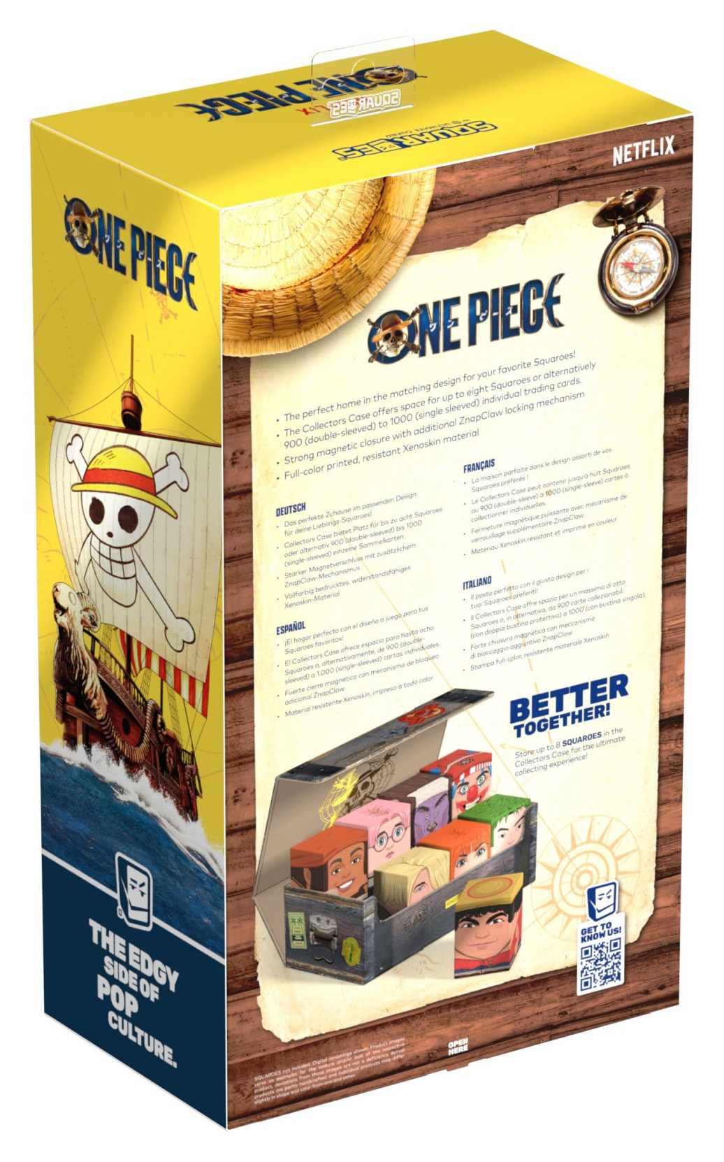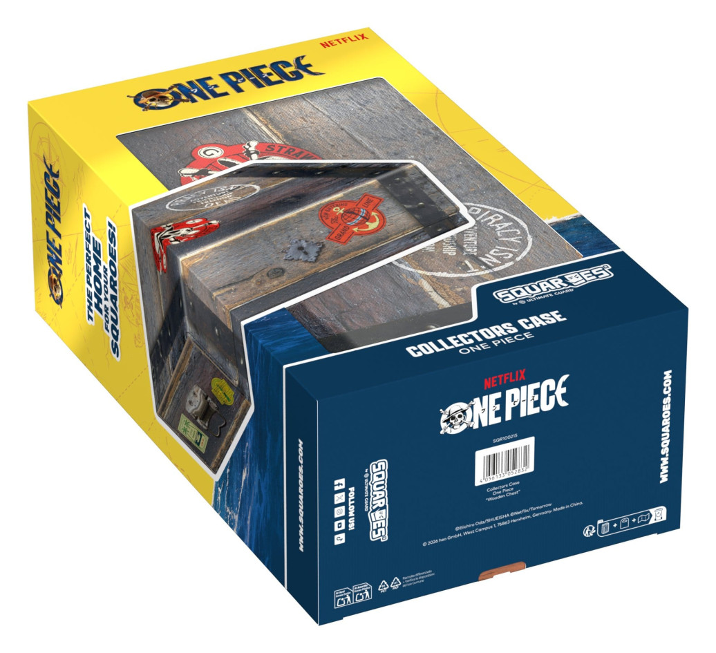 Das Collectors Case 800 von Squaroes ist die perfekte Aufbewahrungsbox für mehrere TCG-Decks, Einzelkarten – und natürlich eure Squaroes-Sammlung! Das ONE PIECE Collectors Case bietet Platz für acht Squaroes-Deckboxen oder bis zu 900 Einzelkarten in doppelter Schutzhülle* von Spielen wie Magic: The Gathering, Pokémon, Lorcana, Flesh and Blood, Yu-Gi-Oh!, Riftbound oder One Piece. Das widerstandsfähige, vollfarbig bedruckte Xenoskin-Material und der starke Magnetverschluss mit dem bewährtem ZnapClaw-Mechanismus von Ultimate Guard sorgen dafür, dass eure Karten und Deckboxen sicher verwahrt sind.