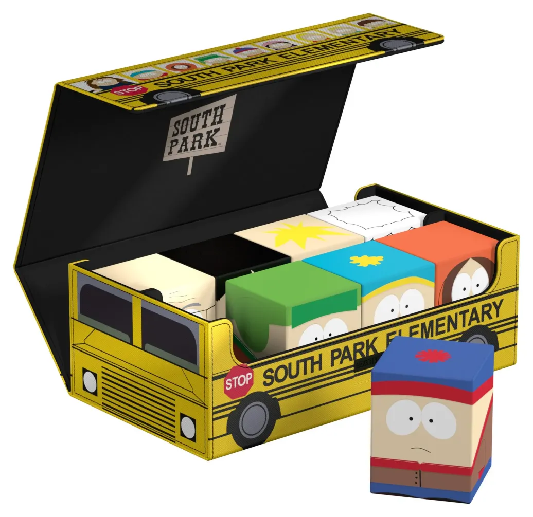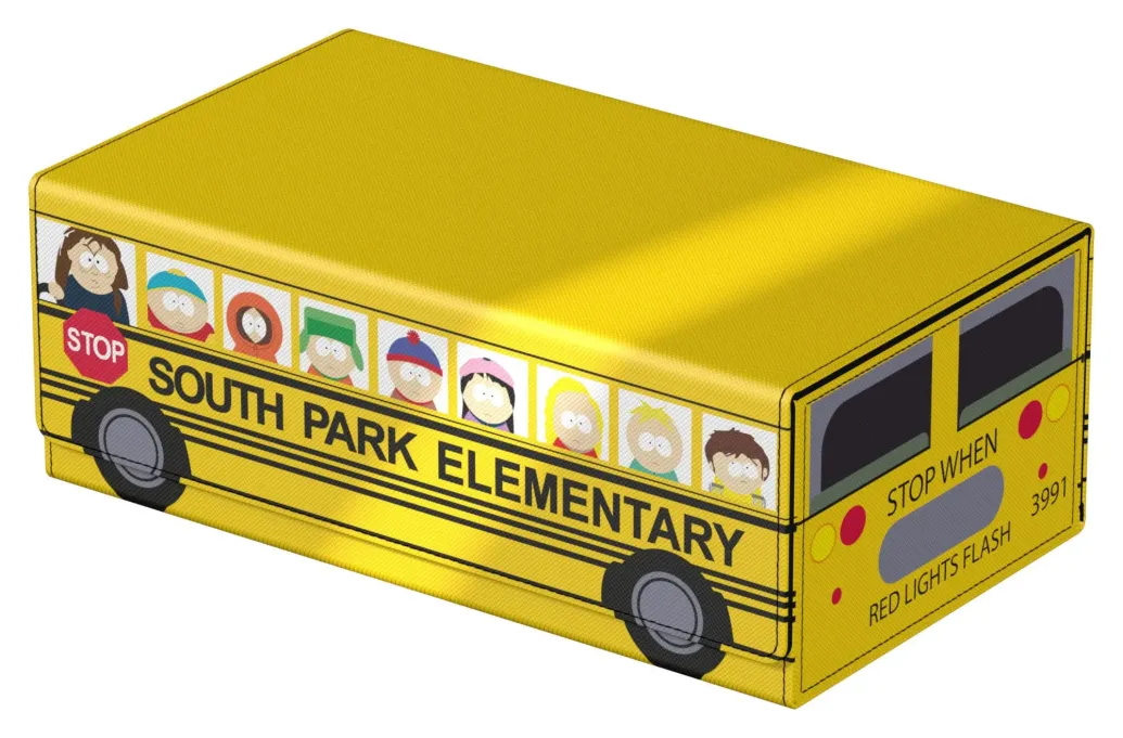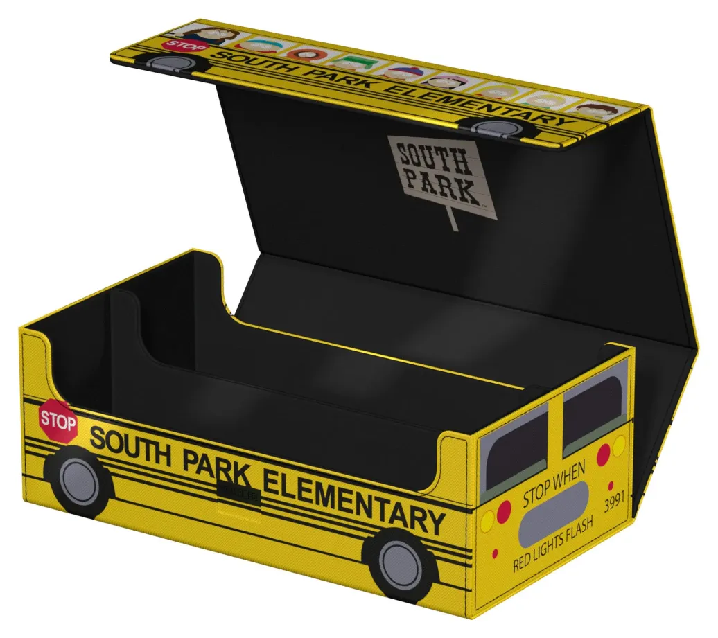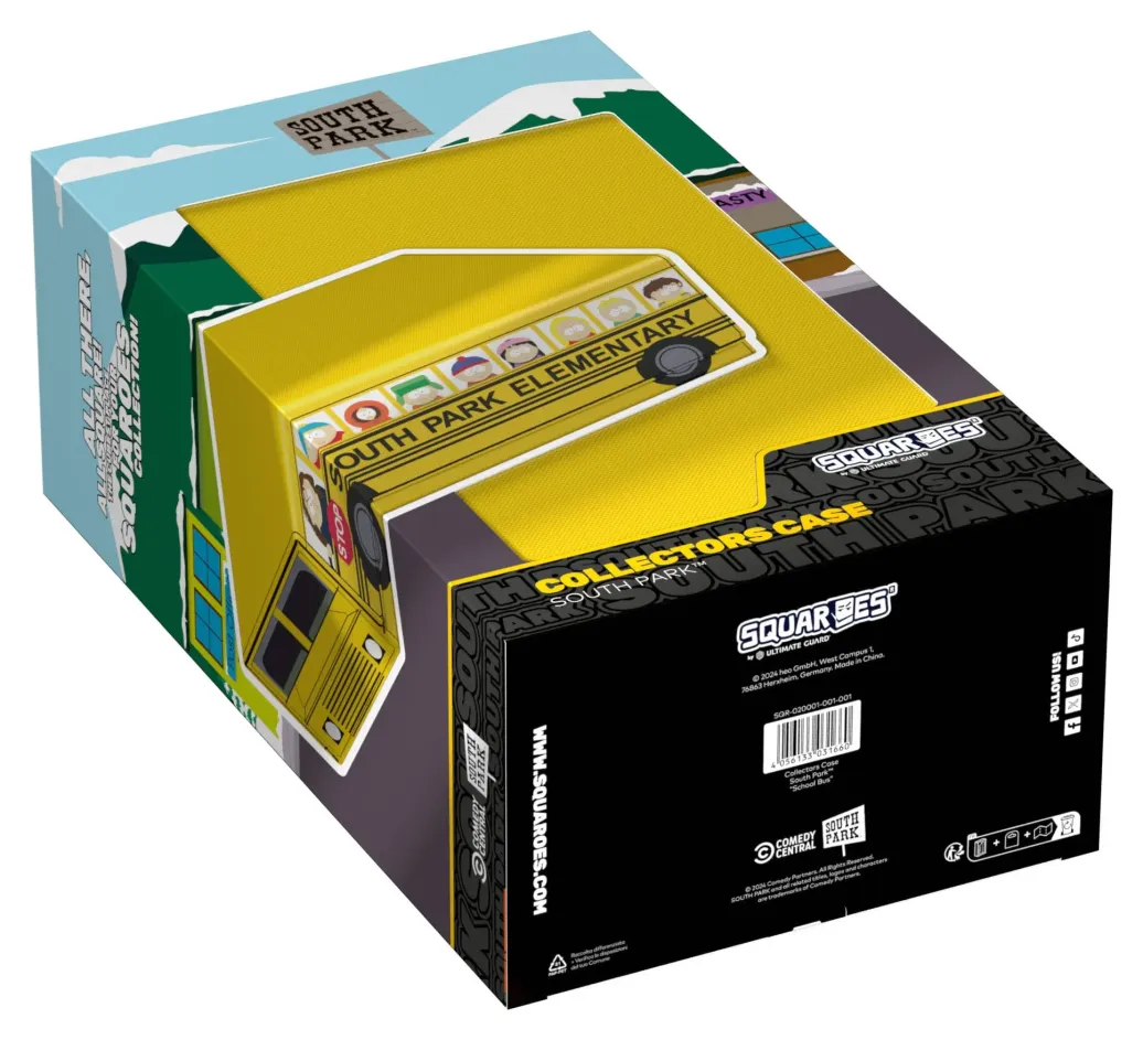Die perfekte Aufbewahrungsbox für mehrere TCG-Decks, Sammelkarten - und natürlich deine Squaroes-Sammlung! Das Collectors Case "School Bus" aus der South Park™-Edition ist das perfekte Zuhause für bis zu acht Squaroes-Boxen, einzelne Spielkarten (bis zu 1000 in doppelter Schutzhülle) oder Gaming-Zubehör aller Art. Das vollfarbig bedruckte, widerstandsfähige Xenoskin-Material sowie der starke Magnetverschluss mit ZnapClaw-Mechanismus sorgen dafür, dass alle Inhalte sicher verwahrt sind.