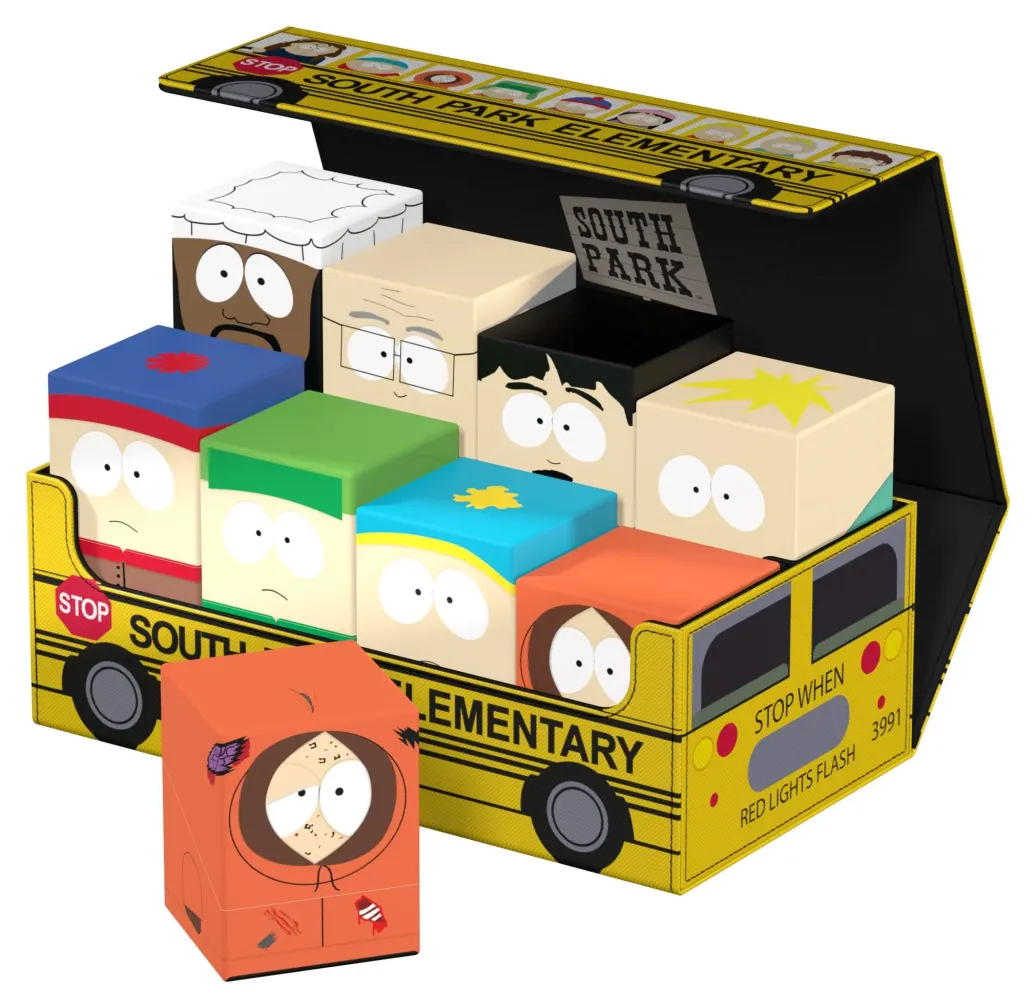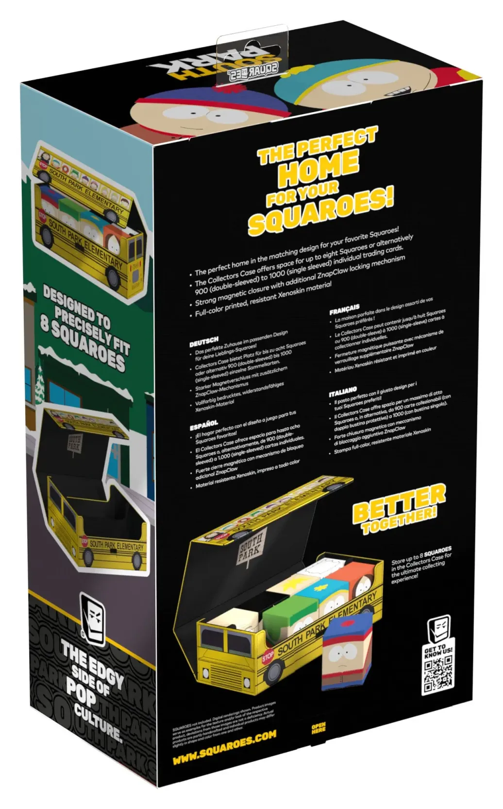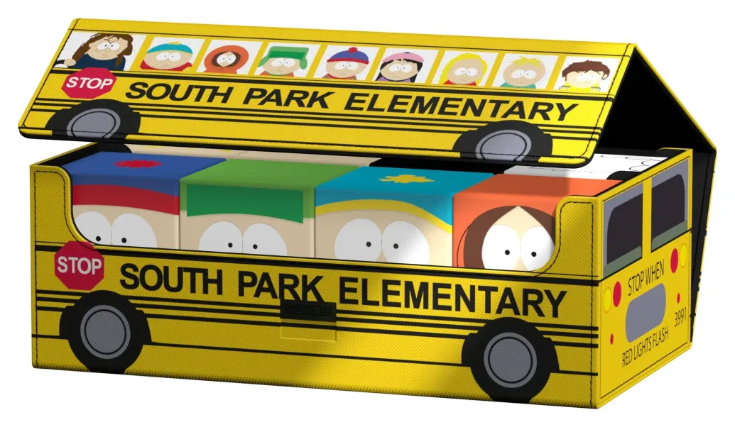 Die perfekte Aufbewahrungsbox für mehrere TCG-Decks, Sammelkarten - und natürlich deine Squaroes-Sammlung! Das Collectors Case "School Bus" aus der South Park™-Edition ist das perfekte Zuhause für bis zu acht Squaroes-Boxen, einzelne Spielkarten (bis zu 1000 in doppelter Schutzhülle) oder Gaming-Zubehör aller Art. Das vollfarbig bedruckte, widerstandsfähige Xenoskin-Material sowie der starke Magnetverschluss mit ZnapClaw-Mechanismus sorgen dafür, dass alle Inhalte sicher verwahrt sind.