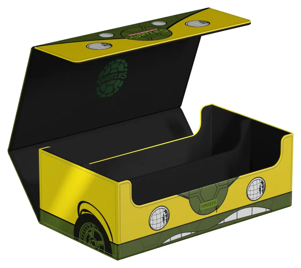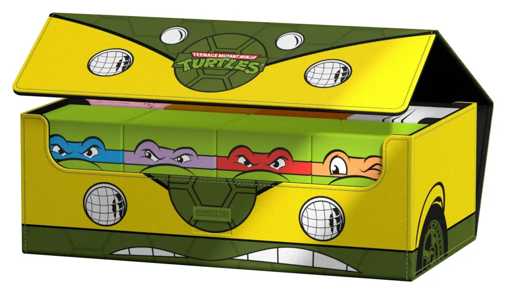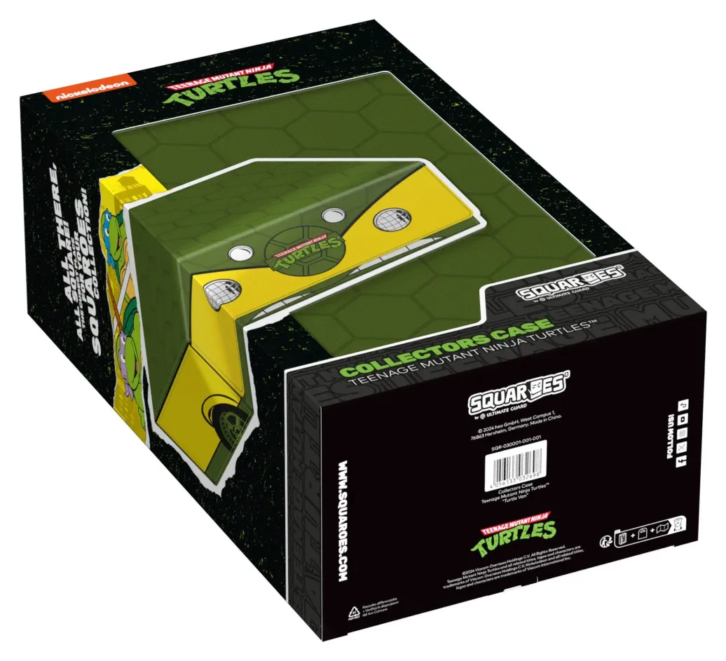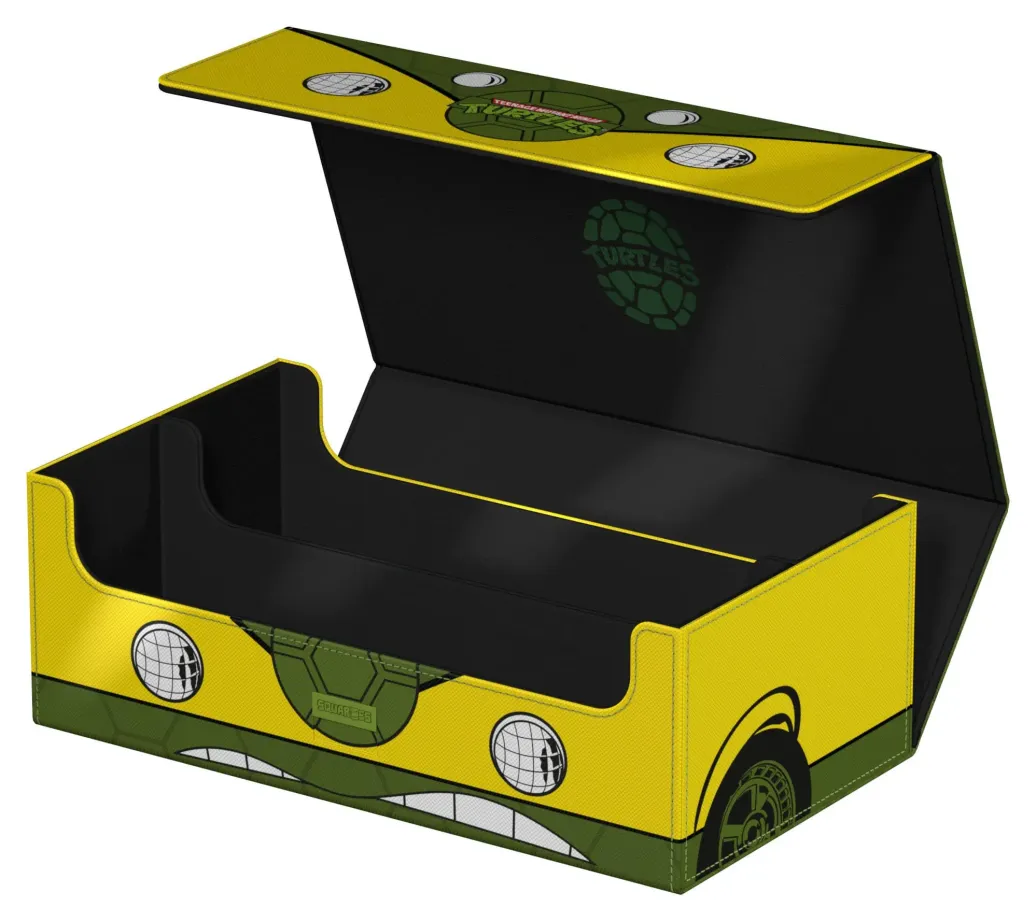 Die perfekte Aufbewahrungsbox für mehrere TCG-Decks, Sammelkarten - und natürlich deine Squaroes-Sammlung! Das Collectors Case "Turtle Van" aus der Teenage Mutant Ninja Turtles™-Edition ist das perfekte Zuhause für bis zu acht Squaroes-Boxen, einzelne Spielkarten (bis zu 1000 in doppelter Schutzhülle) oder Gaming-Zubehör aller Art. Das vollfarbig bedruckte, widerstandsfähige Xenoskin-Material sowie der starke Magnetverschluss mit ZnapClaw-Mechanismus sorgen dafür, dass alle Inhalte sicher verwahrt sind.