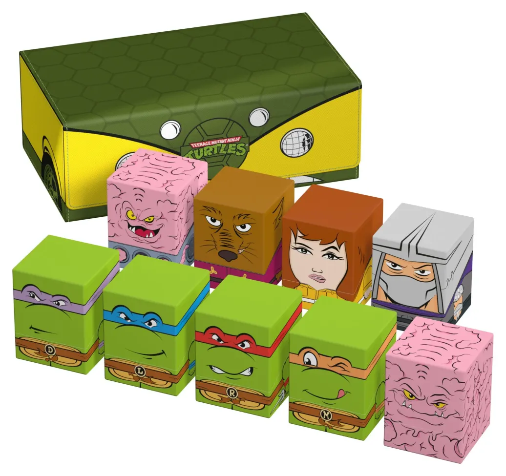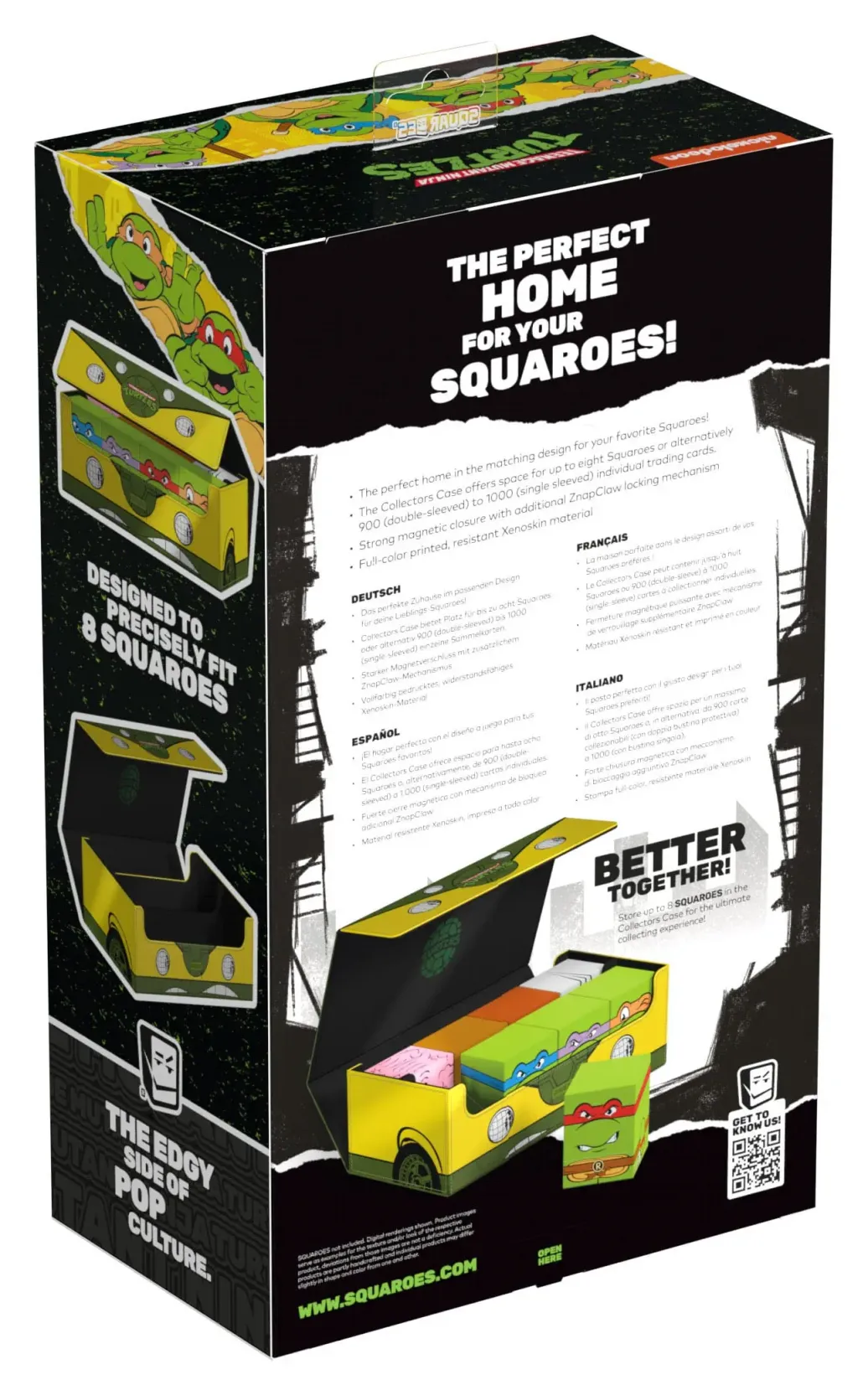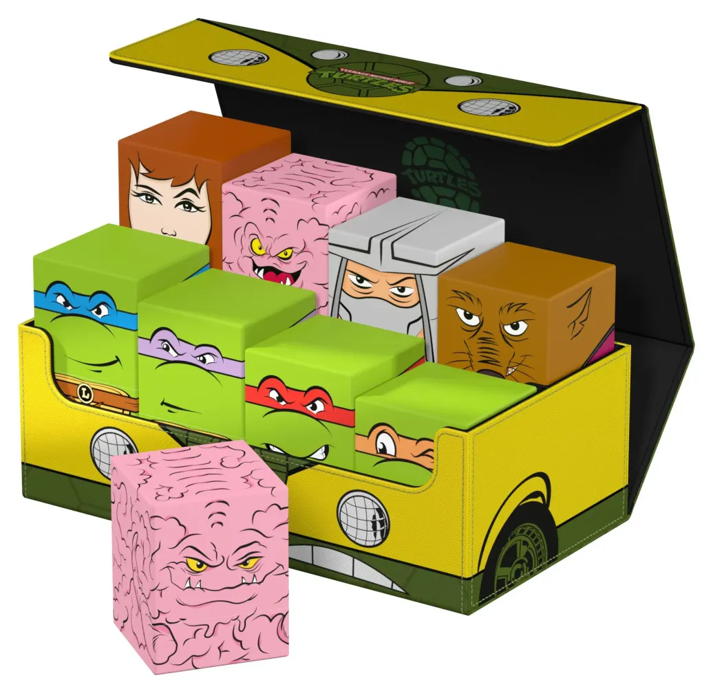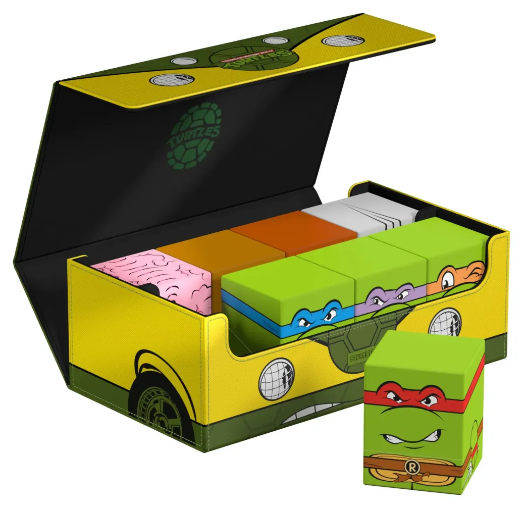 Die perfekte Aufbewahrungsbox für mehrere TCG-Decks, Sammelkarten - und natürlich deine Squaroes-Sammlung! Das Collectors Case "Turtle Van" aus der Teenage Mutant Ninja Turtles™-Edition ist das perfekte Zuhause für bis zu acht Squaroes-Boxen, einzelne Spielkarten (bis zu 1000 in doppelter Schutzhülle) oder Gaming-Zubehör aller Art. Das vollfarbig bedruckte, widerstandsfähige Xenoskin-Material sowie der starke Magnetverschluss mit ZnapClaw-Mechanismus sorgen dafür, dass alle Inhalte sicher verwahrt sind.