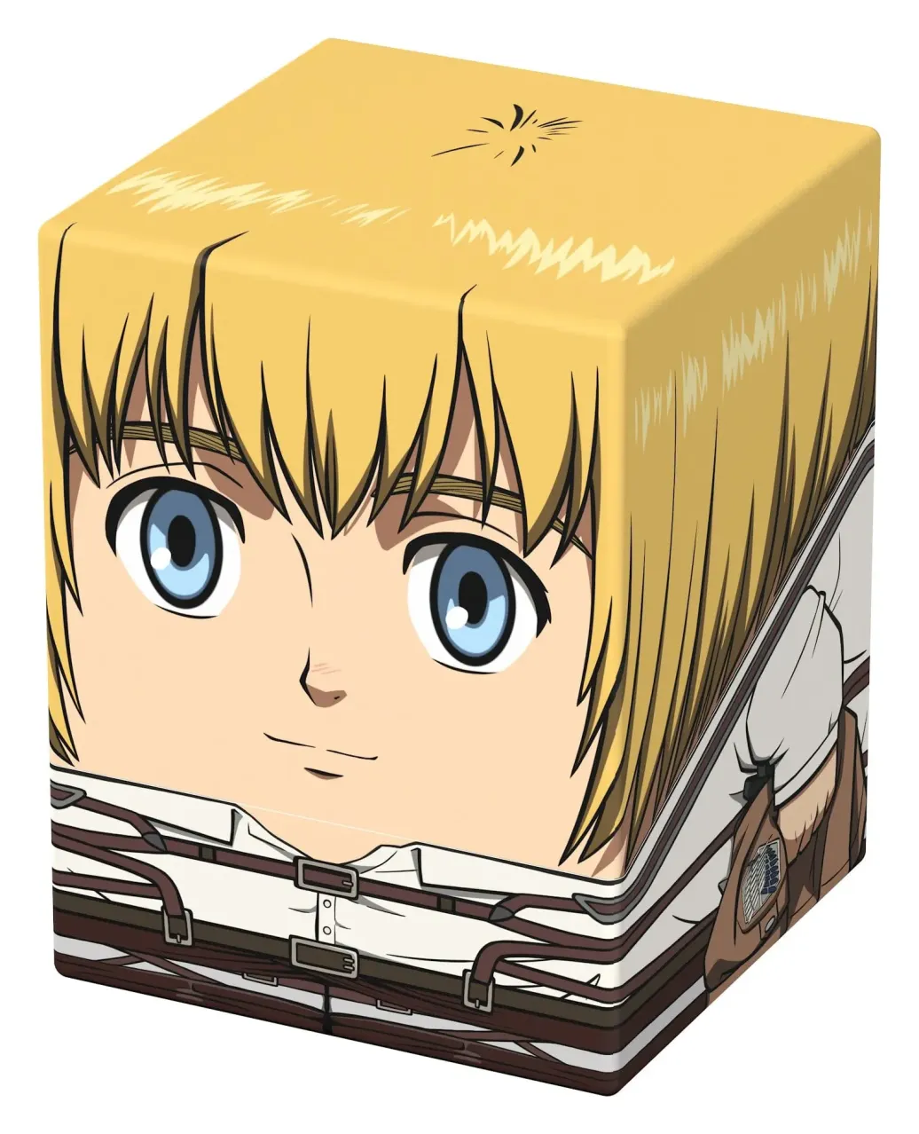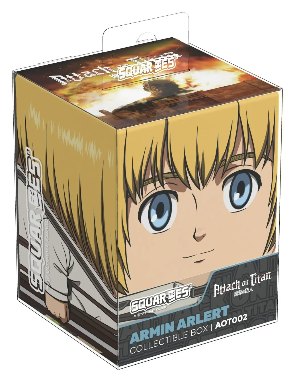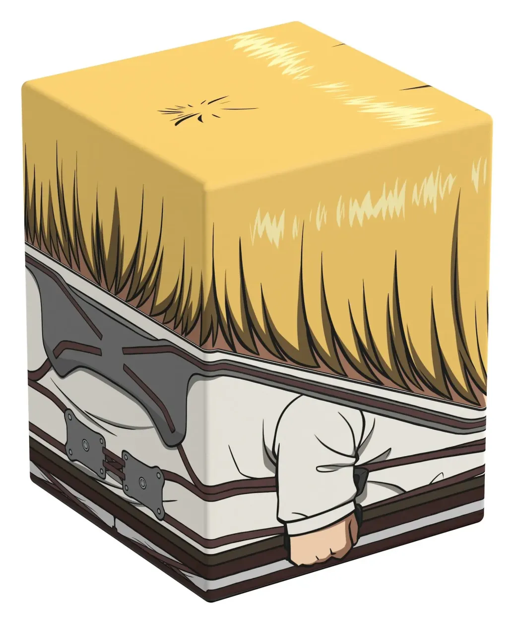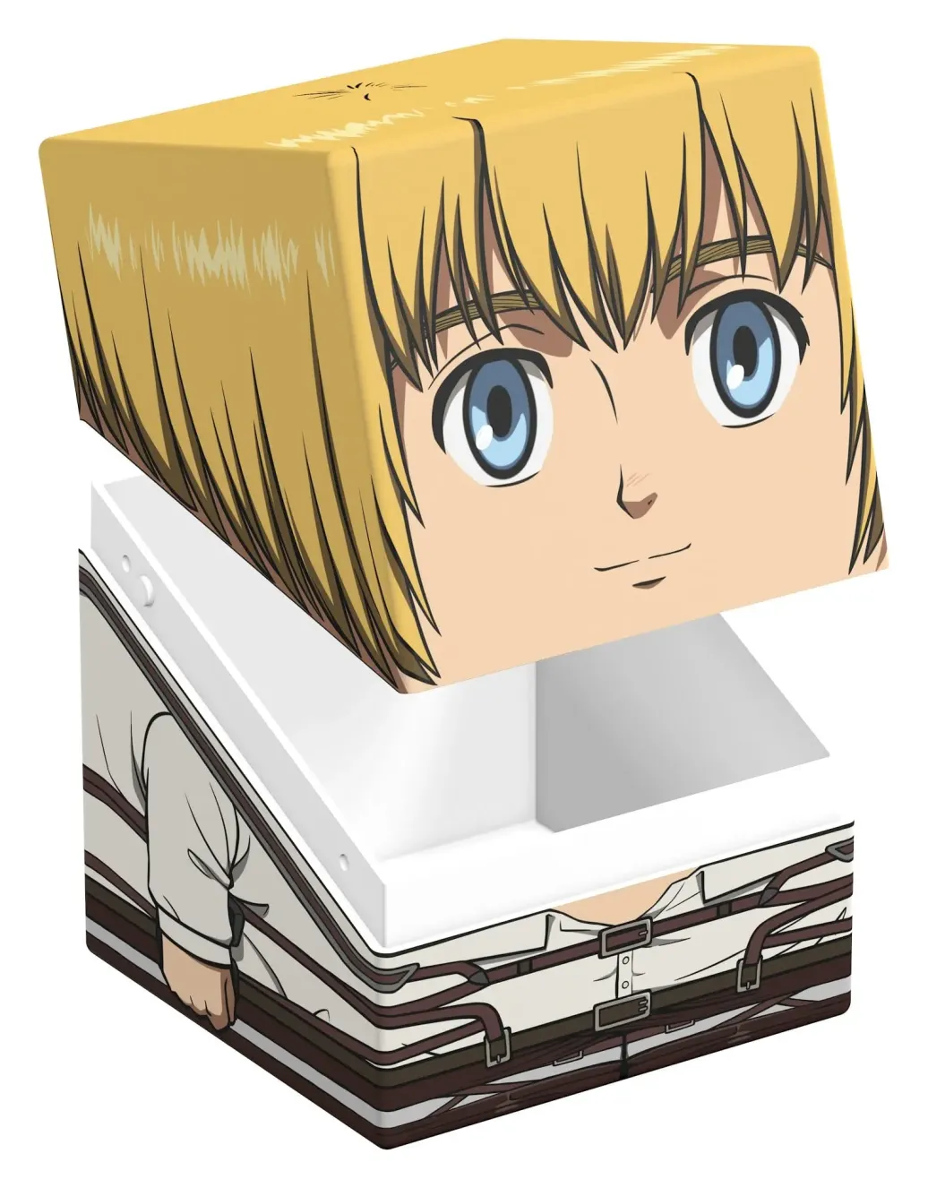 Sammelbare Box zur Aufbewahrung von TCG-Decks, Tabletop-Zubehör und/oder Sammlerstücken. Der Armin Arlert Squaroe aus der Attack on Titan-Edition bietet als Deck-Box benutzt Platz für bis zu 100 Spielkarten in doppelter Schutzhülle. Squaroes werden aus 78% erneuerbaren Rohstoffen hergestellt und passen perfekt in das separat erhältliche Collectors Case.