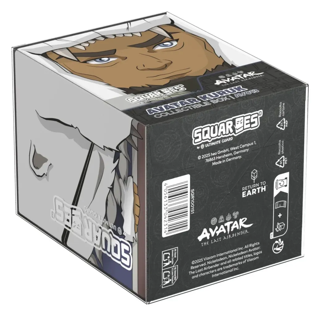 Sammelbare Box zur Aufbewahrung von TCG-Decks, Tabletop-Zubehör und/oder Sammlerstücken. Der Avatar Kuruk Squaroe aus der Avatar: The Last Airbender-Edition bietet als Deck-Box benutzt Platz für bis zu 100 Spielkarten in doppelter Schutzhülle. Squaroes werden aus 78% erneuerbaren Rohstoffen hergestellt und passen perfekt in das separat erhältliche Collectors Case.