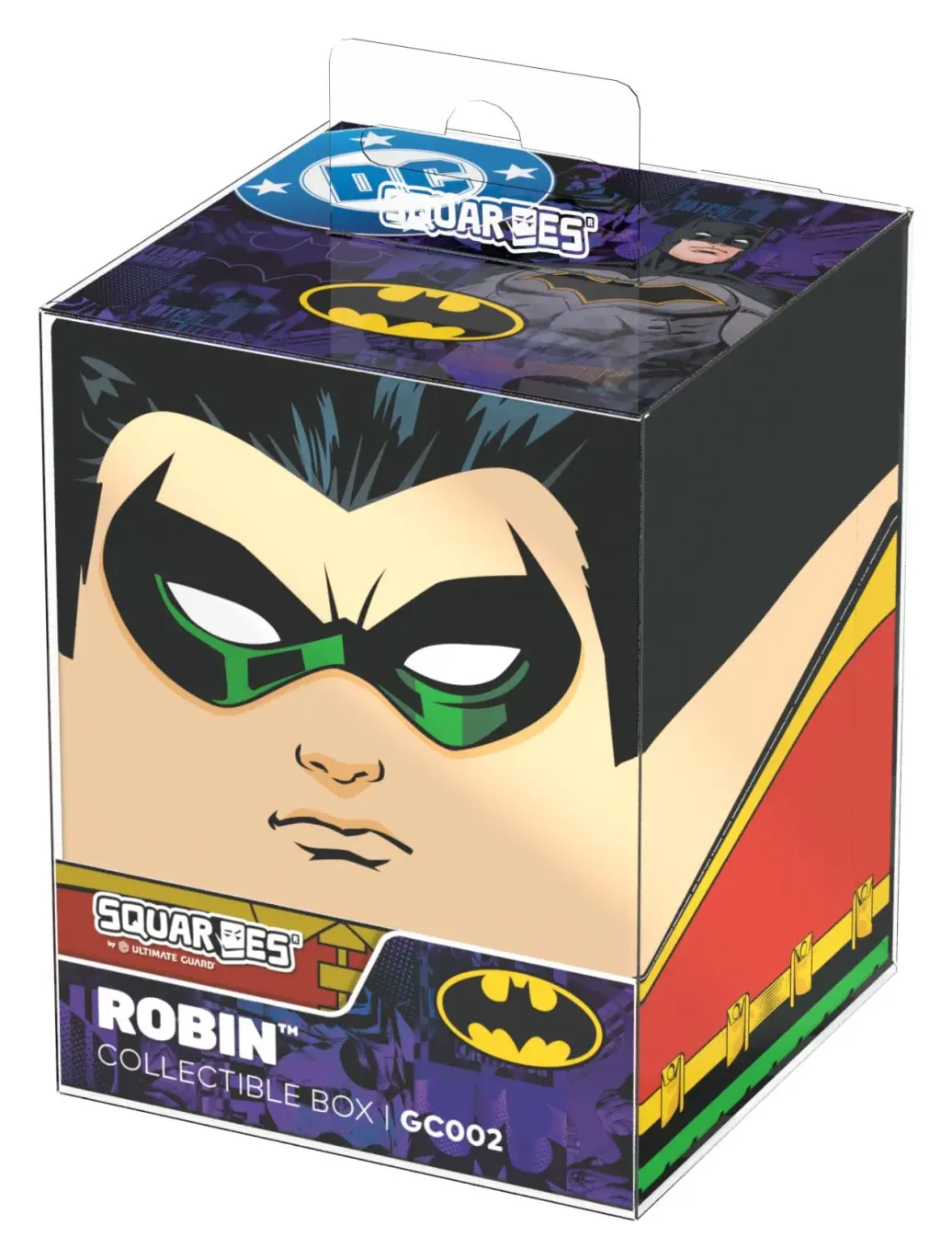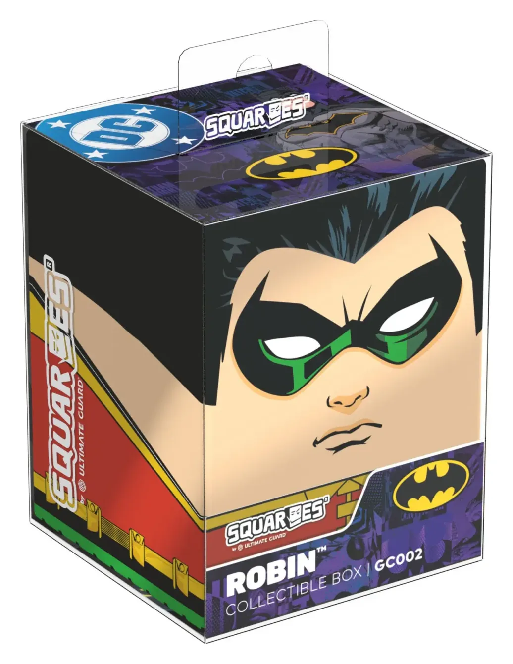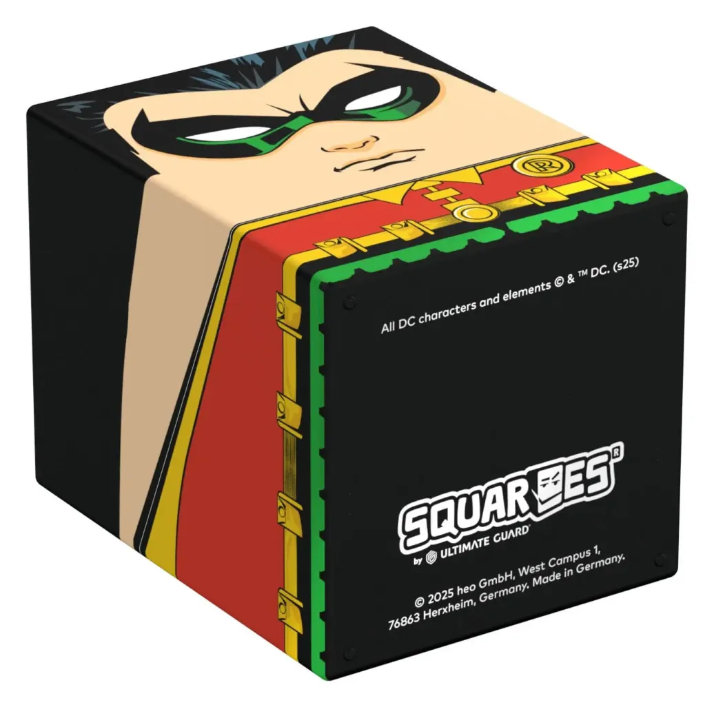 Sammelbare Box zur Aufbewahrung von TCG-Decks, Tabletop-Zubehör und/oder Sammlerstücken. Der Robin Squaroe aus der Batman: Gotham City-Edition bietet als Deck-Box benutzt Platz für bis zu 100 Spielkarten in doppelter Schutzhülle. Squaroes werden aus 78% erneuerbaren Rohstoffen hergestellt und passen perfekt in das separat erhältliche Collectors Case.