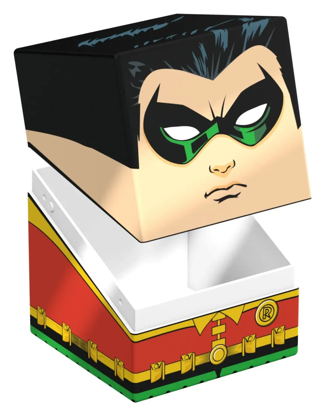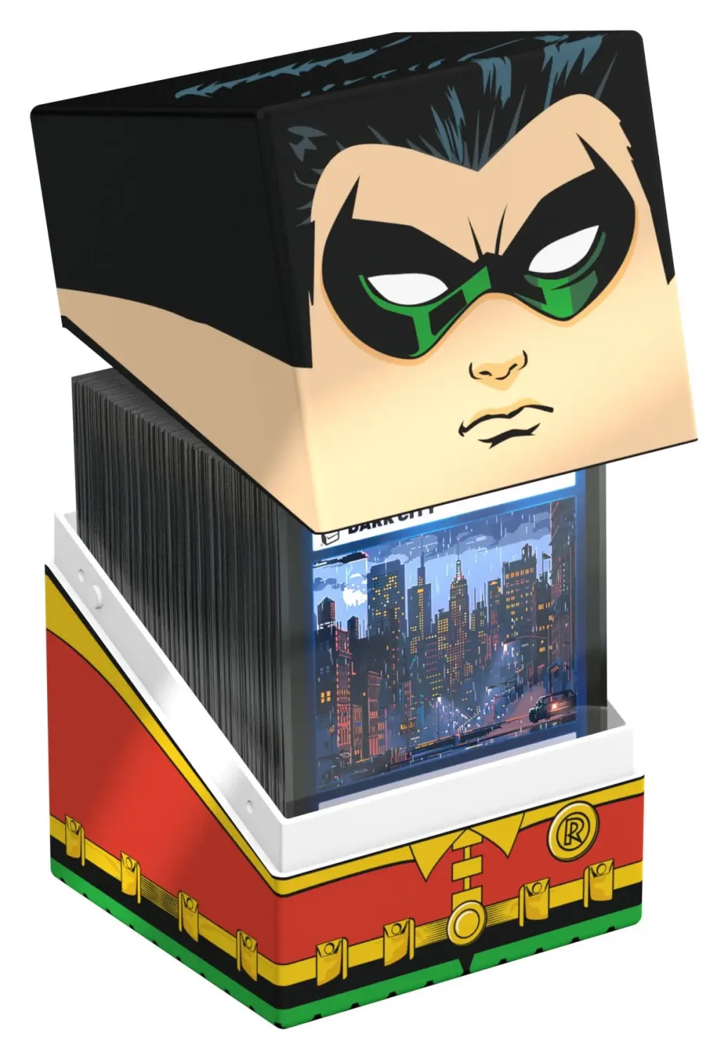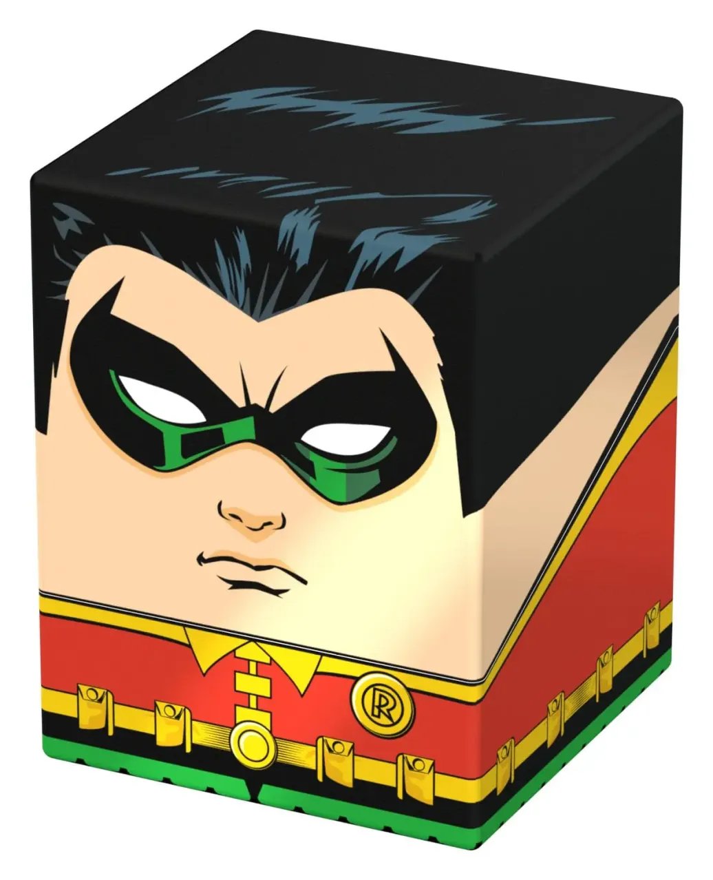 Sammelbare Box zur Aufbewahrung von TCG-Decks, Tabletop-Zubehör und/oder Sammlerstücken. Der Robin Squaroe aus der Batman: Gotham City-Edition bietet als Deck-Box benutzt Platz für bis zu 100 Spielkarten in doppelter Schutzhülle. Squaroes werden aus 78% erneuerbaren Rohstoffen hergestellt und passen perfekt in das separat erhältliche Collectors Case.