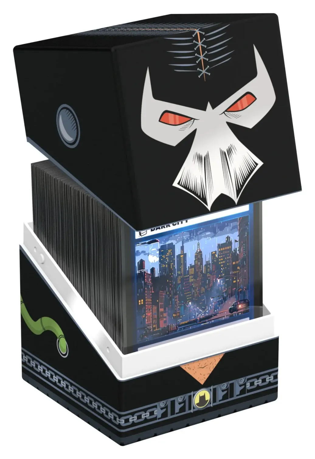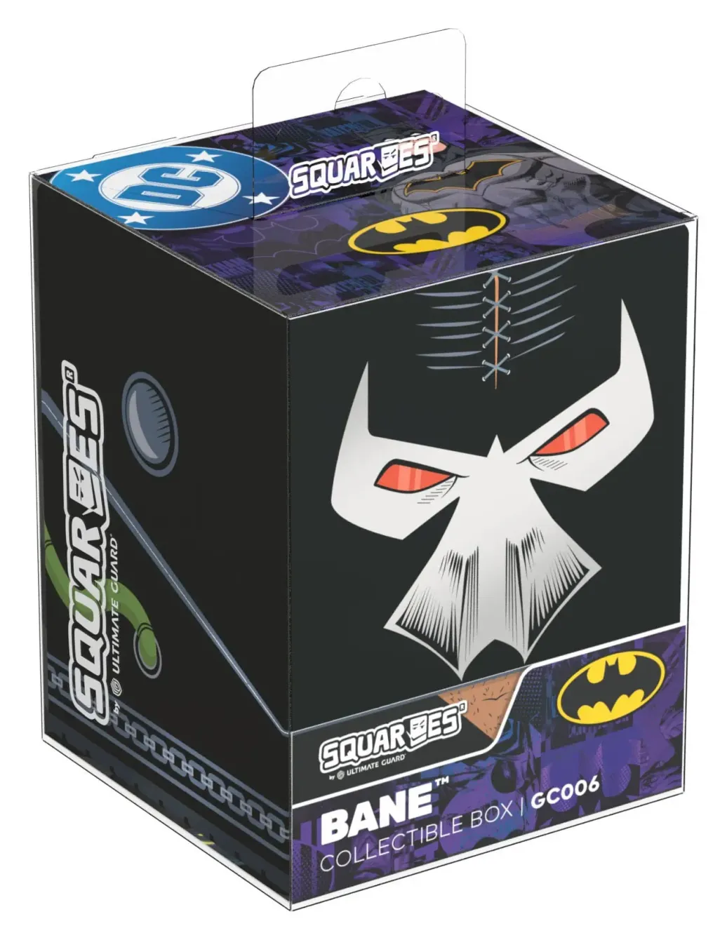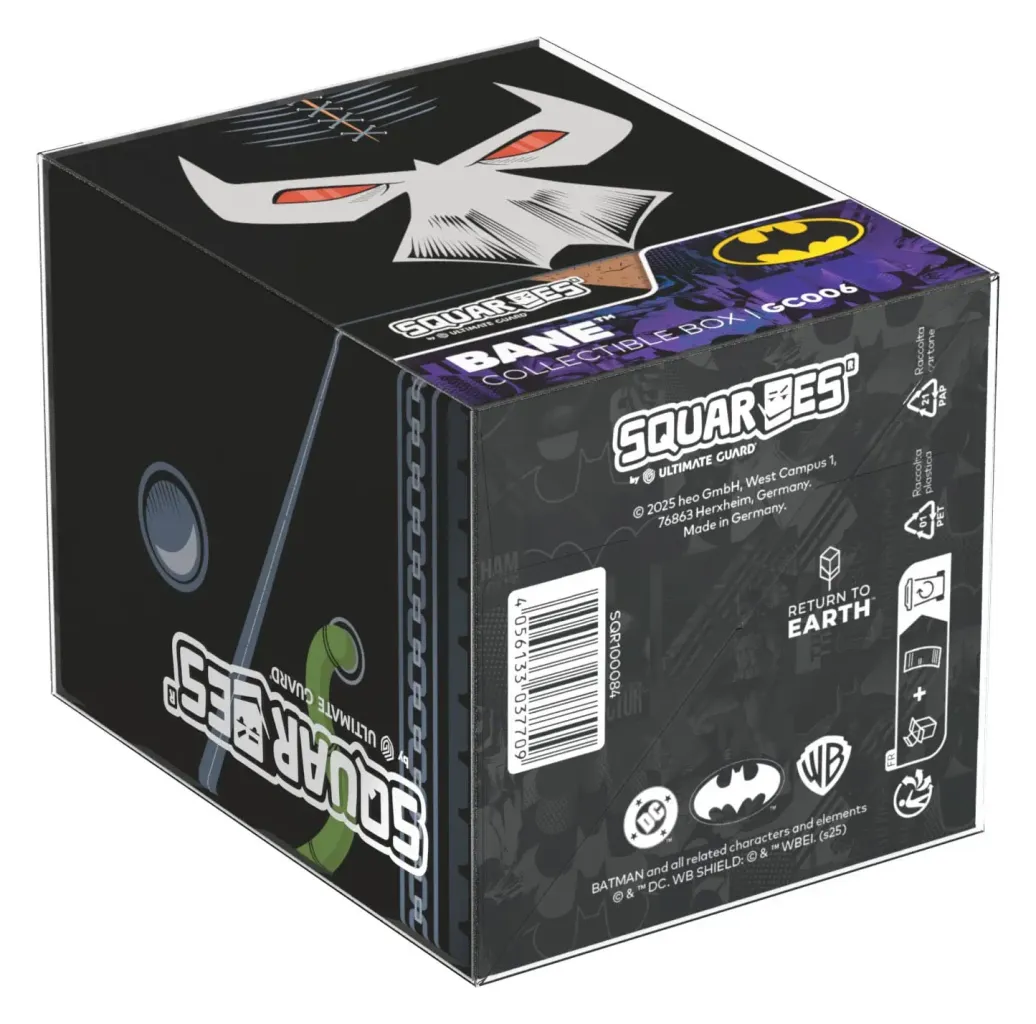 Sammelbare Box zur Aufbewahrung von TCG-Decks, Tabletop-Zubehör und/oder Sammlerstücken. Der Bane Squaroe aus der Batman: Gotham City-Edition bietet als Deck-Box benutzt Platz für bis zu 100 Spielkarten in doppelter Schutzhülle. Squaroes werden aus 78% erneuerbaren Rohstoffen hergestellt und passen perfekt in das separat erhältliche Collectors Case.
