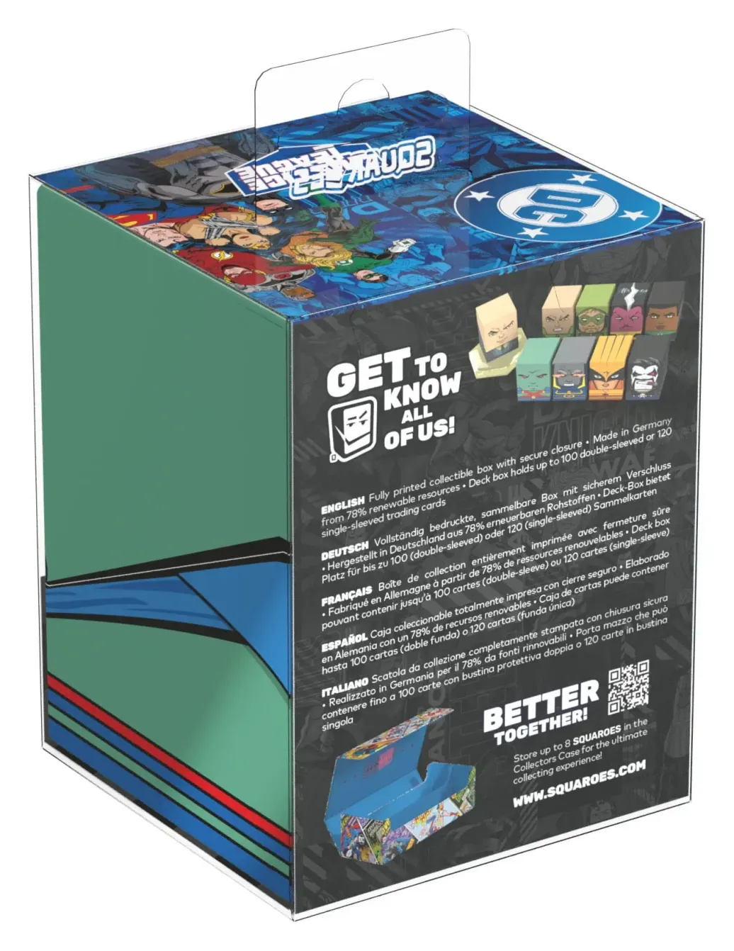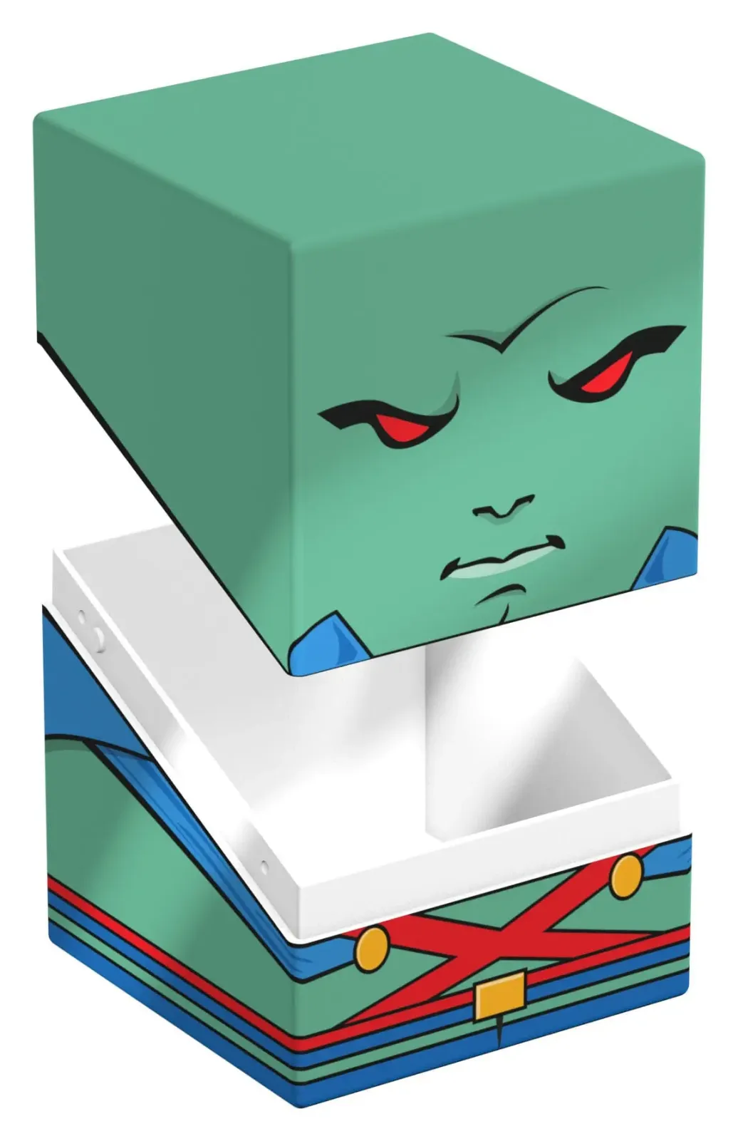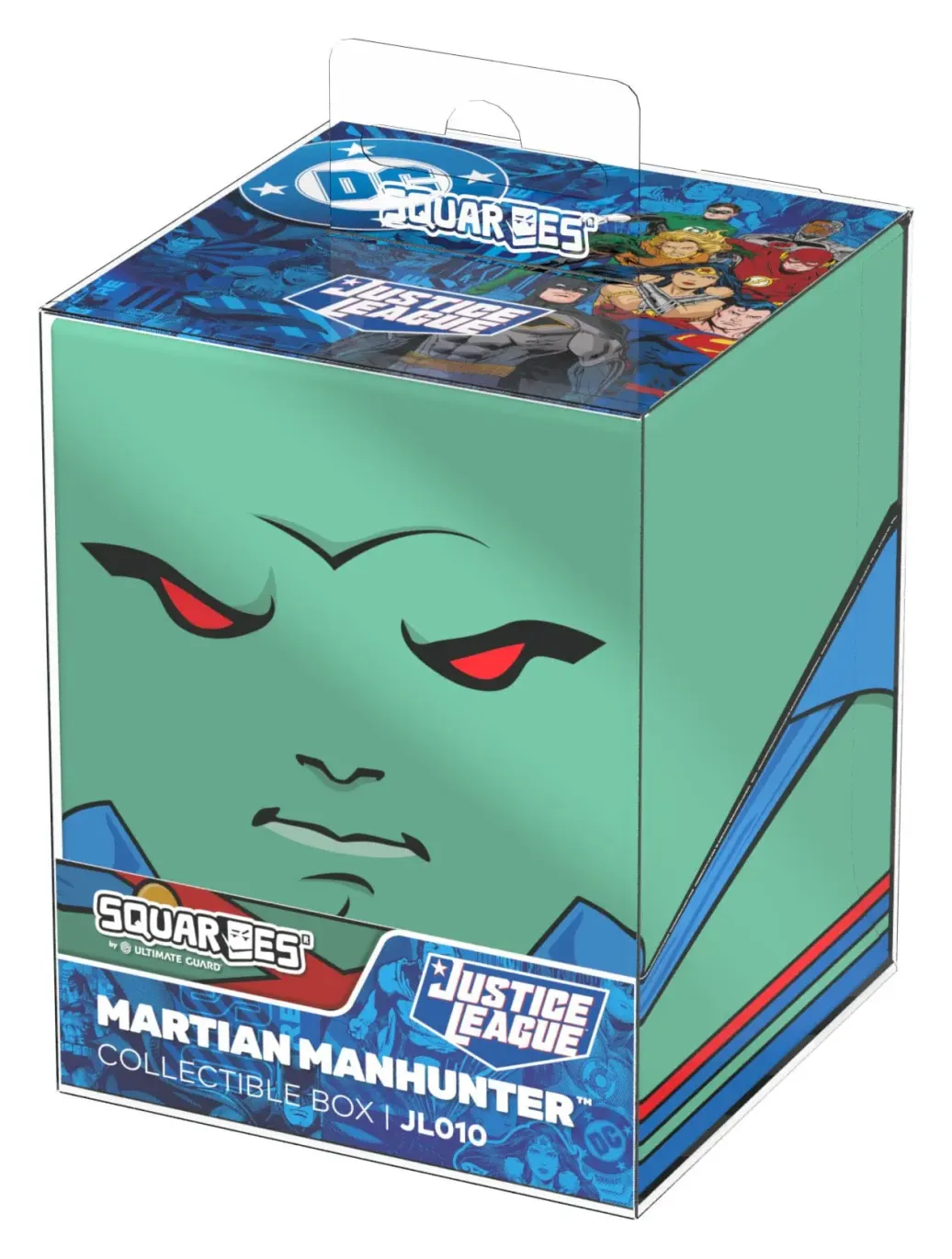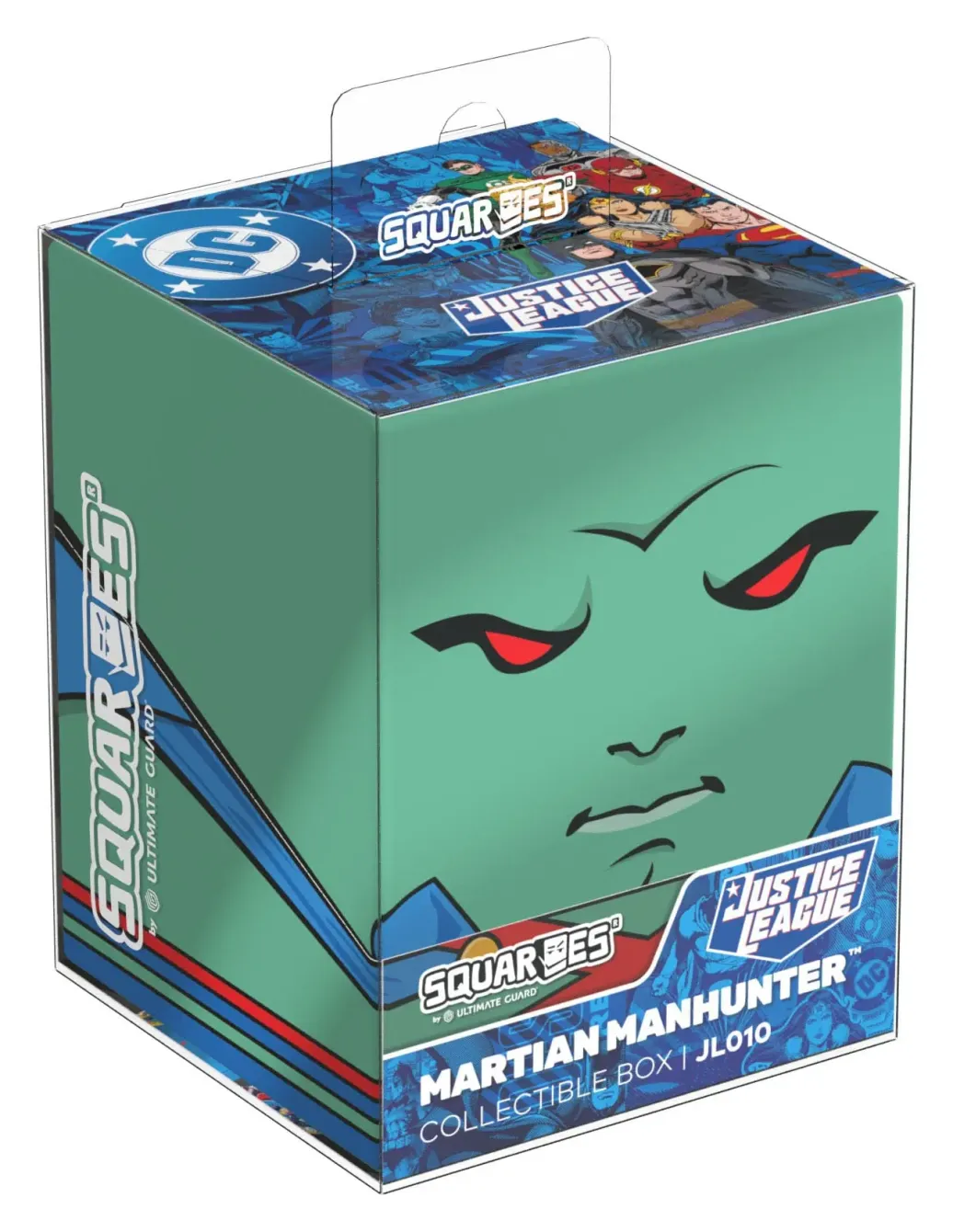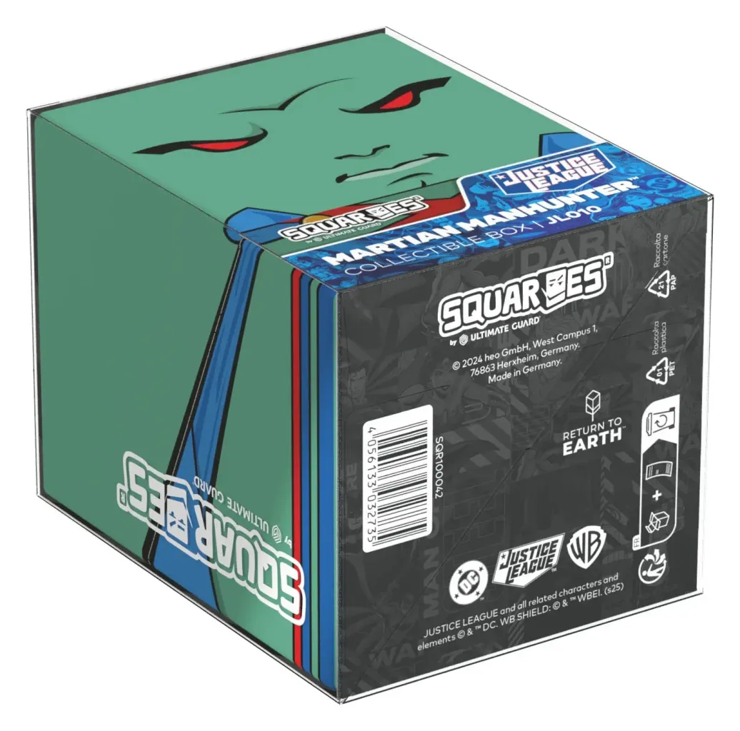 Sammelbare Box zur Aufbewahrung von TCG-Decks, Tabletop-Zubehör und/oder Sammlerstücken. Der Martian Manhunter™ Squaroe aus der DC Justice League™-Edition bietet als Deck-Box benutzt Platz für bis zu 100 Spielkarten in doppelter Schutzhülle. Squaroes werden aus 78% erneuerbaren Rohstoffen hergestellt. . .