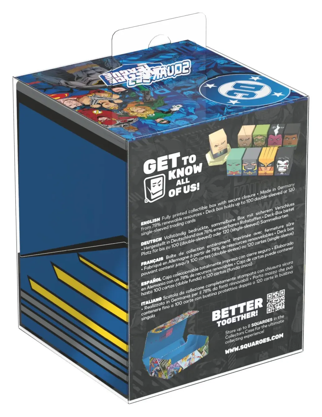 Sammelbare Box zur Aufbewahrung von TCG-Decks, Tabletop-Zubehör und/oder Sammlerstücken. Der Darkseid™ Squaroe aus der DC Justice League™-Edition bietet als Deck-Box benutzt Platz für bis zu 100 Spielkarten in doppelter Schutzhülle. Squaroes werden aus 78% erneuerbaren Rohstoffen hergestellt. .