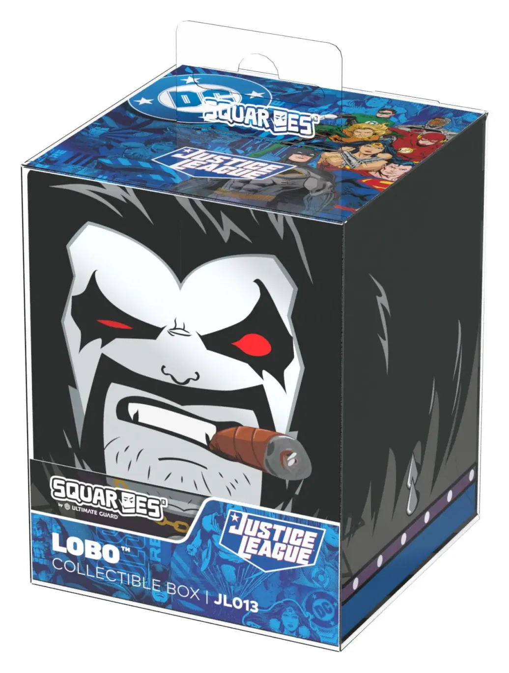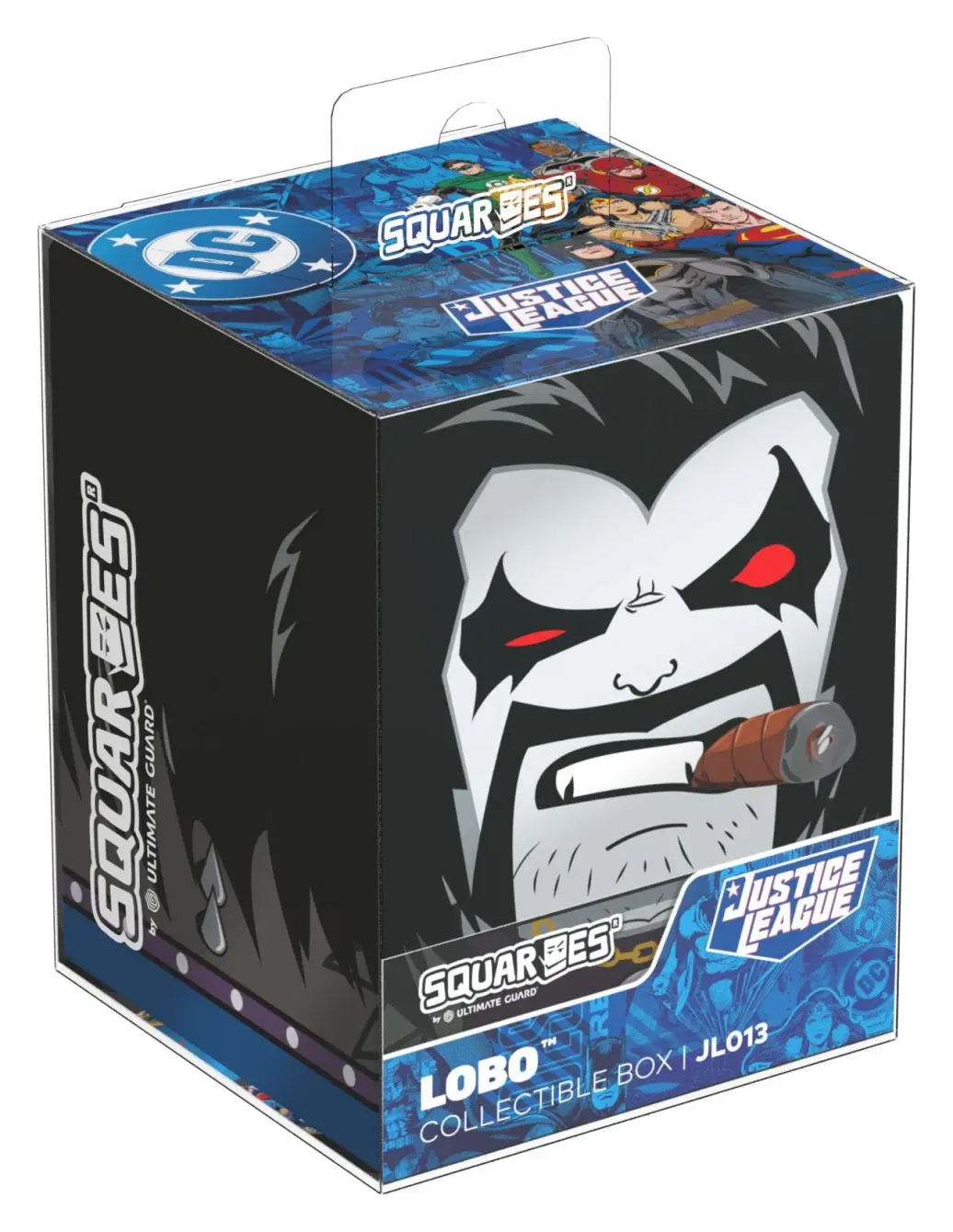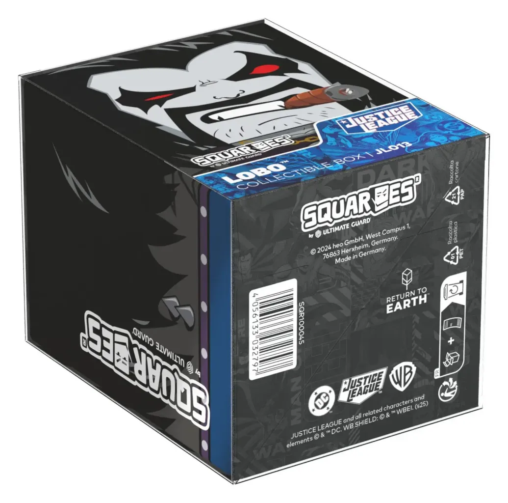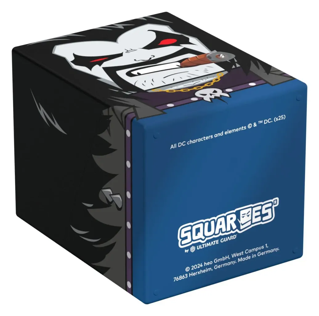 Sammelbare Box zur Aufbewahrung von TCG-Decks, Tabletop-Zubehör und/oder Sammlerstücken. Der Lobo™ Squaroe aus der DC Justice League™-Edition bietet als Deck-Box benutzt Platz für bis zu 100 Spielkarten in doppelter Schutzhülle. Squaroes werden aus 78% erneuerbaren Rohstoffen hergestellt. . .