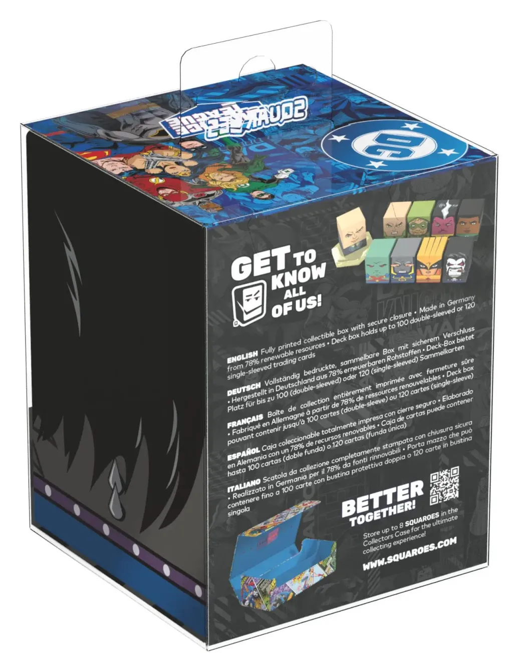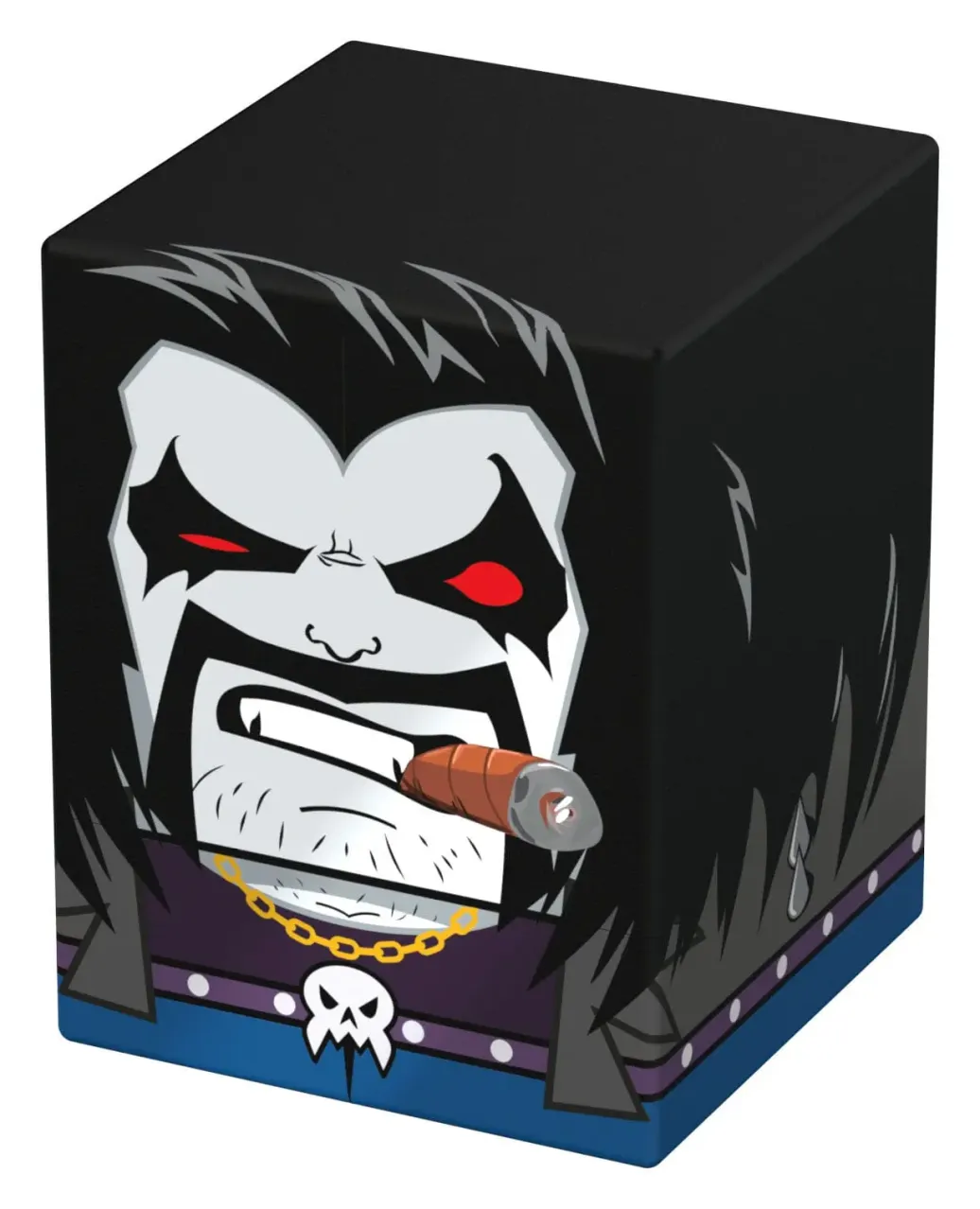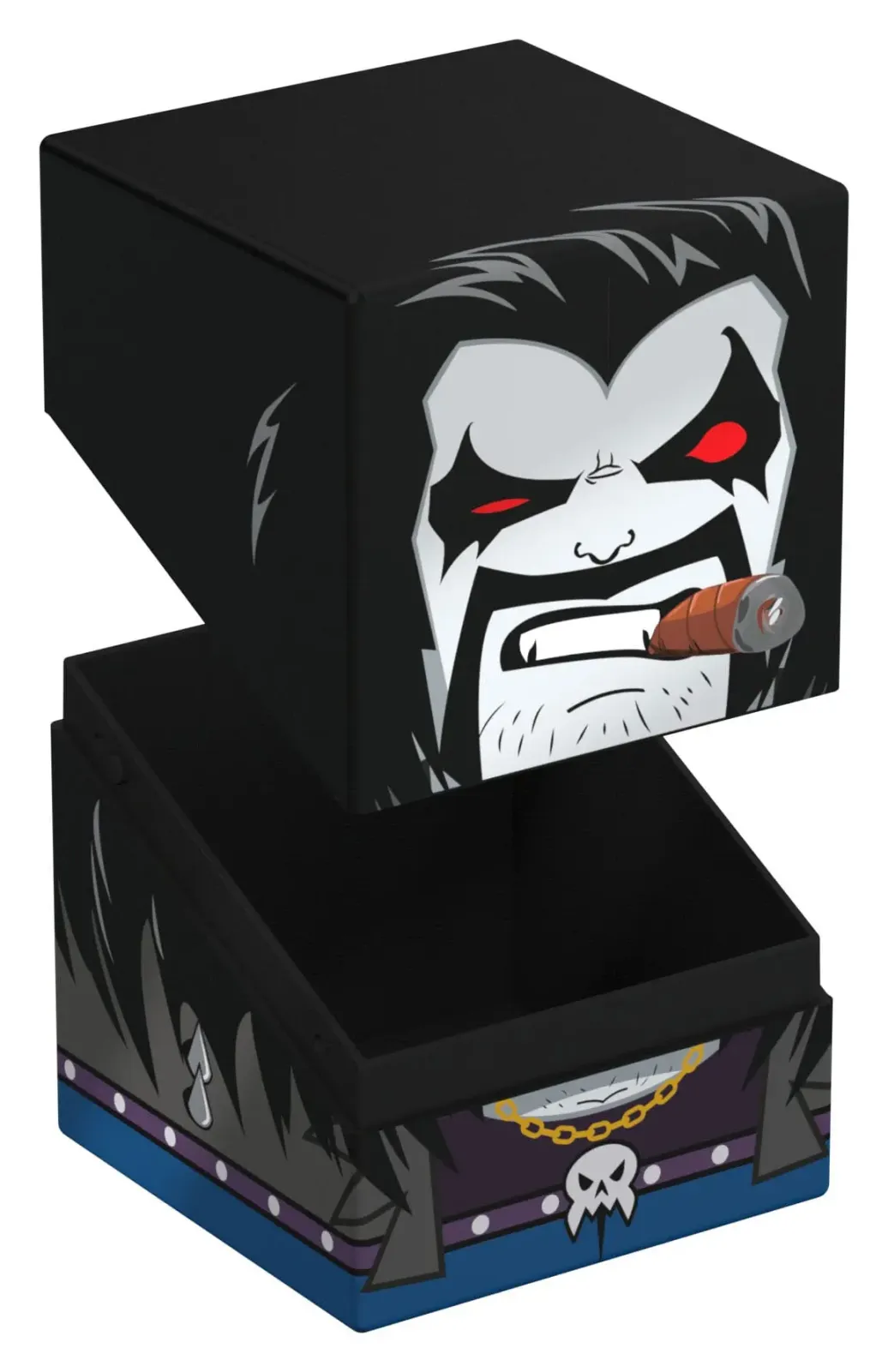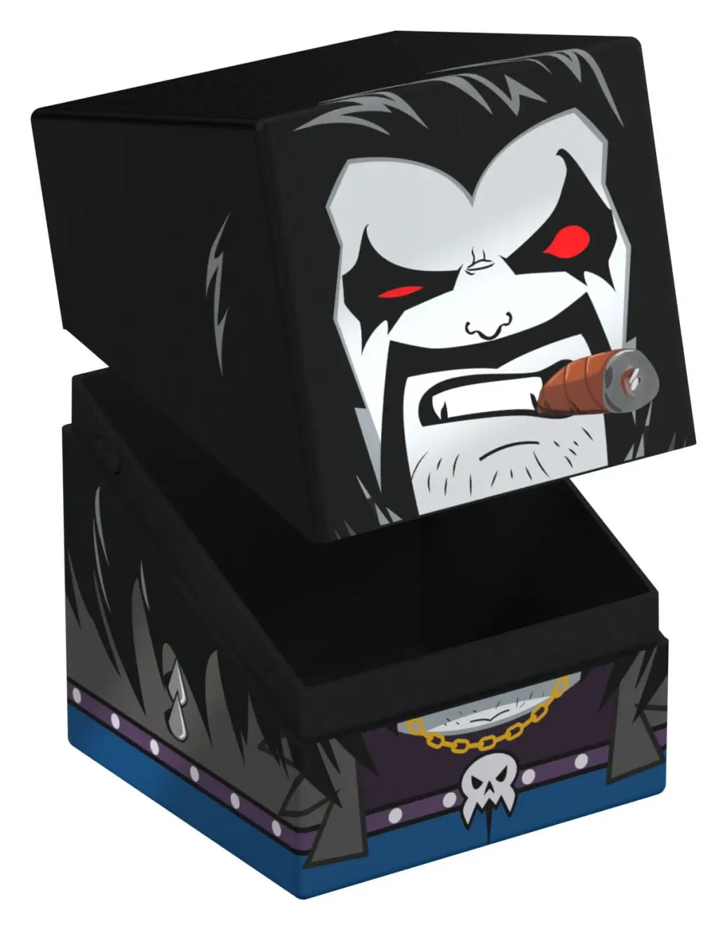 Sammelbare Box zur Aufbewahrung von TCG-Decks, Tabletop-Zubehör und/oder Sammlerstücken. Der Lobo™ Squaroe aus der DC Justice League™-Edition bietet als Deck-Box benutzt Platz für bis zu 100 Spielkarten in doppelter Schutzhülle. Squaroes werden aus 78% erneuerbaren Rohstoffen hergestellt. . .