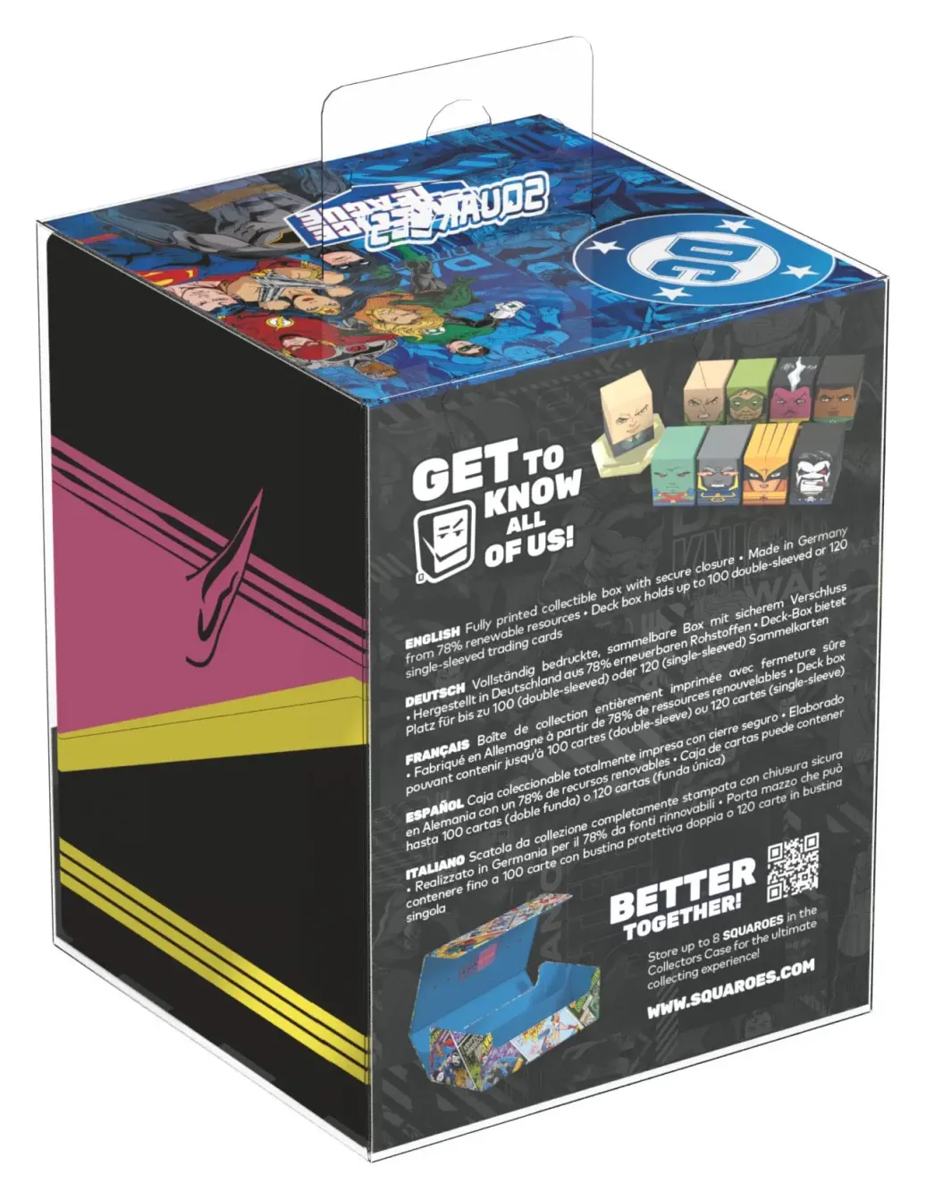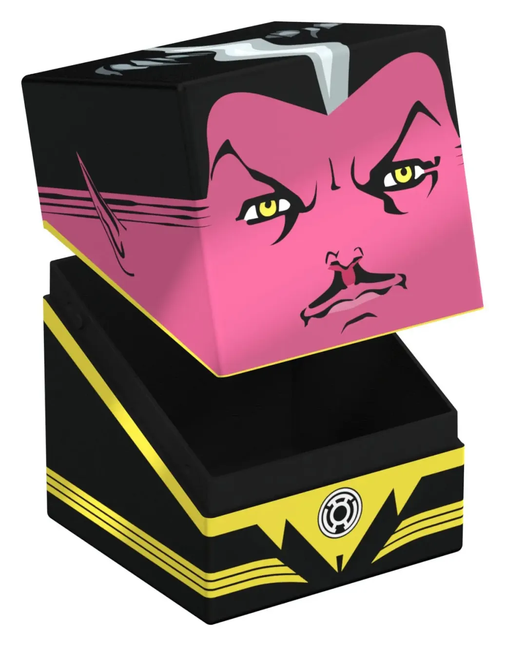 Sammelbare Box zur Aufbewahrung von TCG-Decks, Tabletop-Zubehör und/oder Sammlerstücken. Der Sinestro™ Squaroe aus der DC Justice League™-Edition bietet als Deck-Box benutzt Platz für bis zu 100 Spielkarten in doppelter Schutzhülle. Squaroes werden aus 78% erneuerbaren Rohstoffen hergestellt.