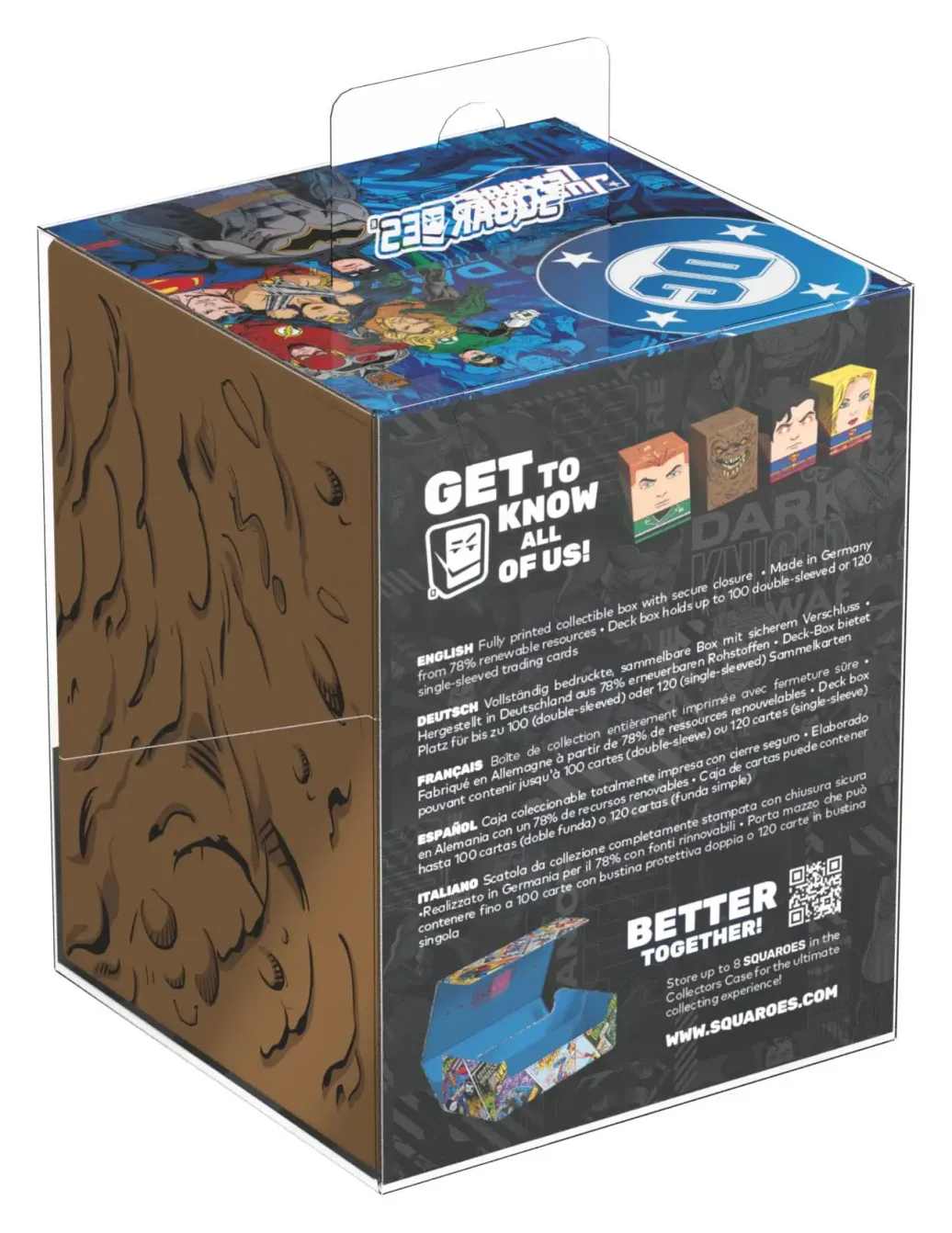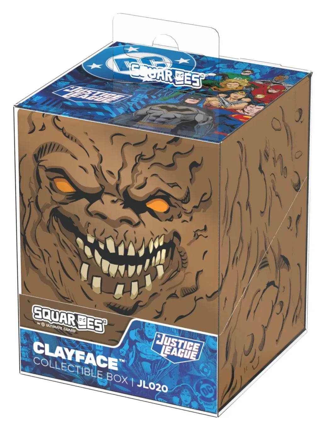 Sammelbare Box zur Aufbewahrung von TCG-Decks, Tabletop-Zubehör und/oder Sammlerstücken. Der Clayface Squaroe aus der DC Justice League™-Edition bietet als Deck-Box benutzt Platz für bis zu 100 Spielkarten in doppelter Schutzhülle. Squaroes werden aus 78% erneuerbaren Rohstoffen hergestellt.