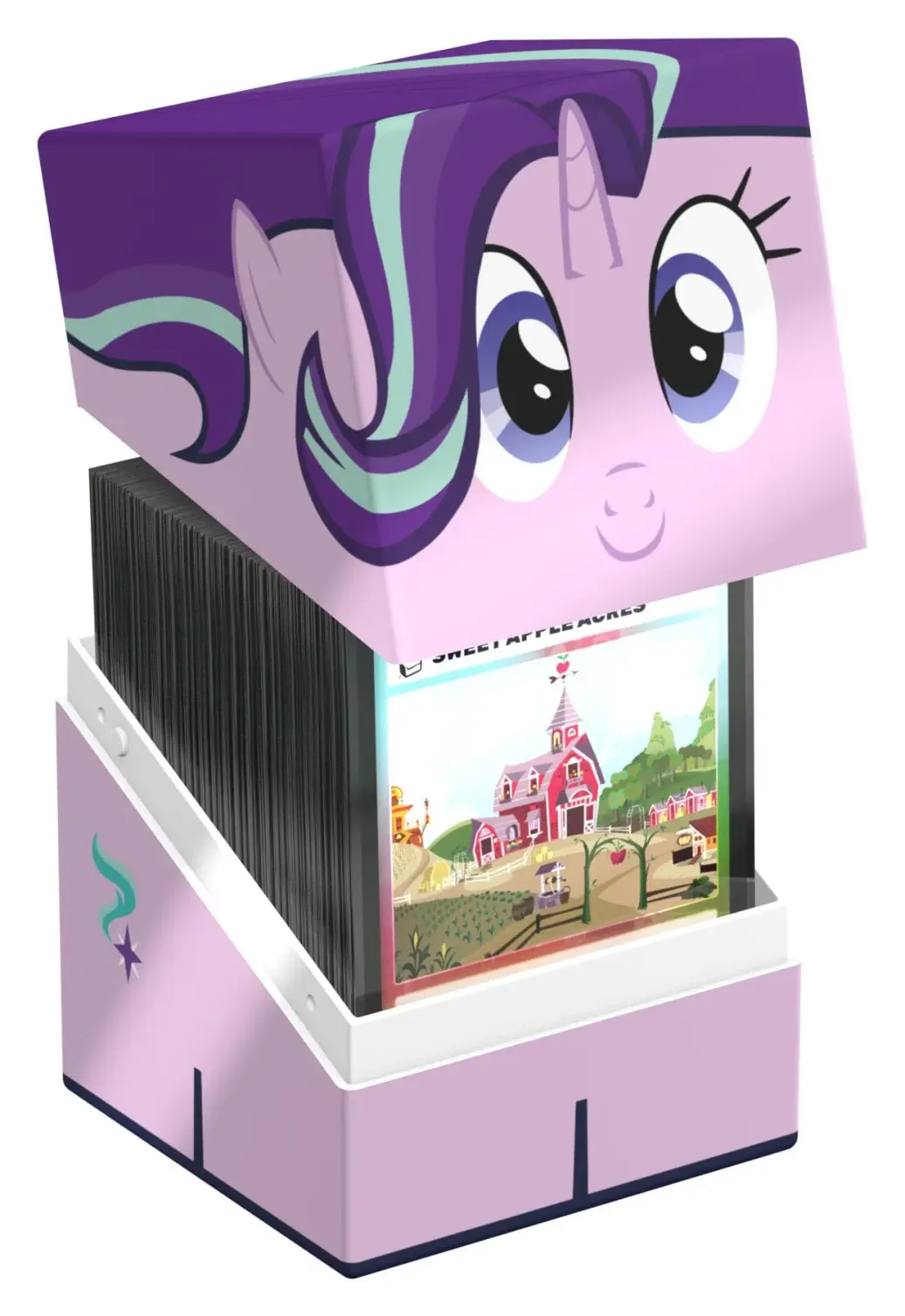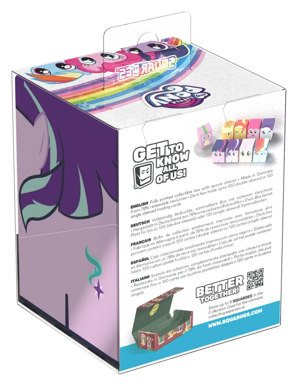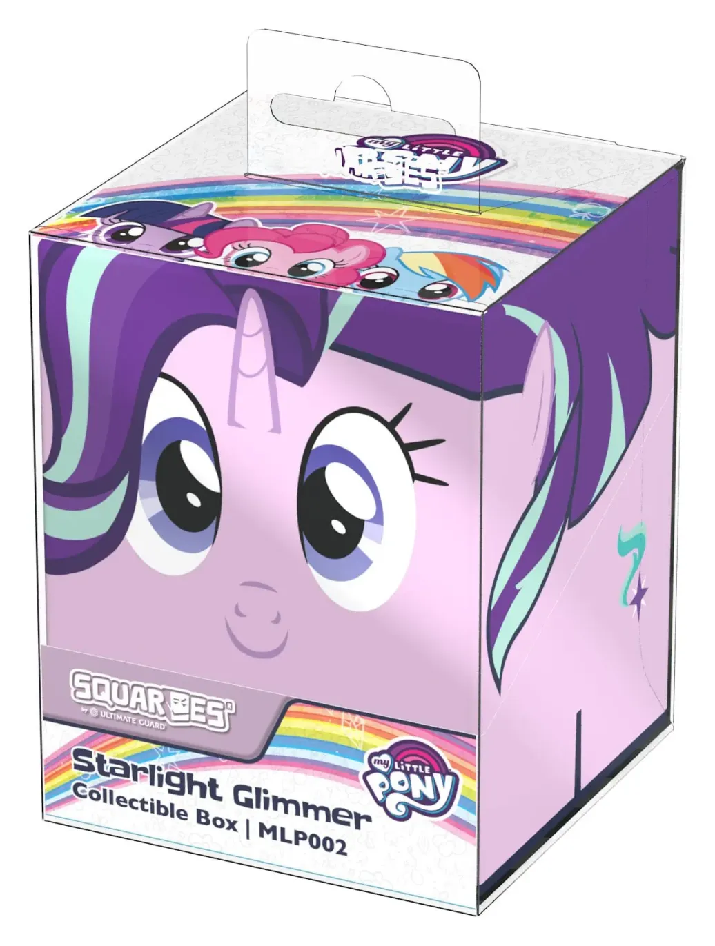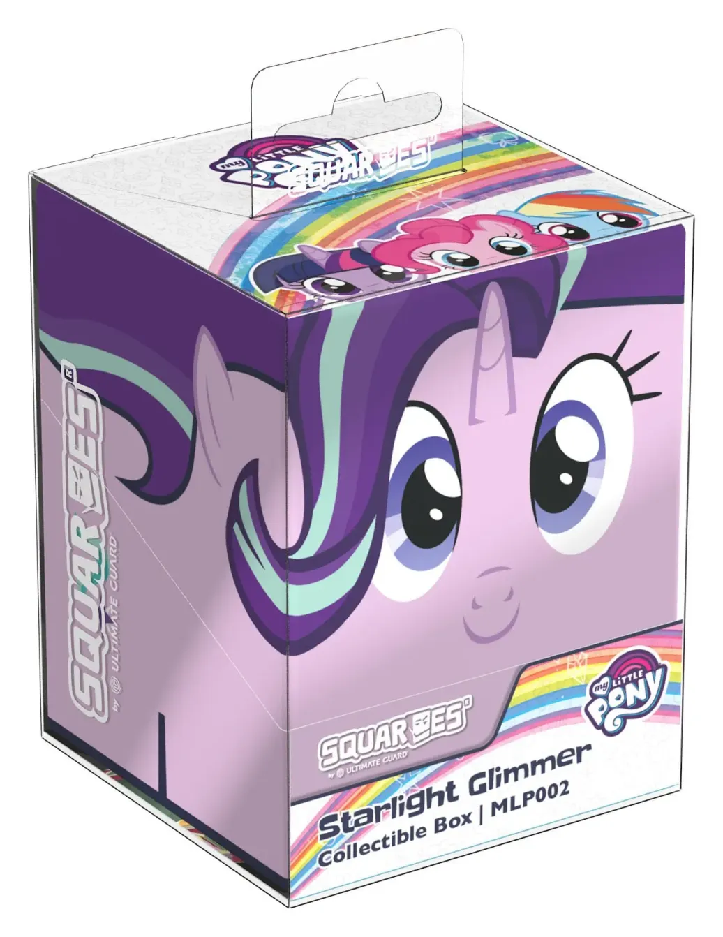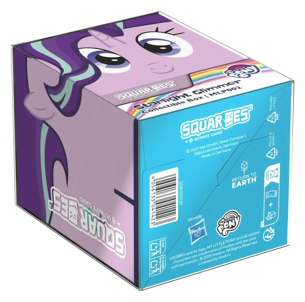 Sammelbare Box zur Aufbewahrung von TCG-Decks, Tabletop-Zubehör und/oder Sammlerstücken. Der Starlight Glimmer Squaroe aus der My Little Pony "Friendship is Magic"-Edition bietet als Deck-Box benutzt Platz für bis zu 100 Spielkarten in doppelter Schutzhülle. Squaroes werden aus 78% erneuerbaren Rohstoffen hergestellt.