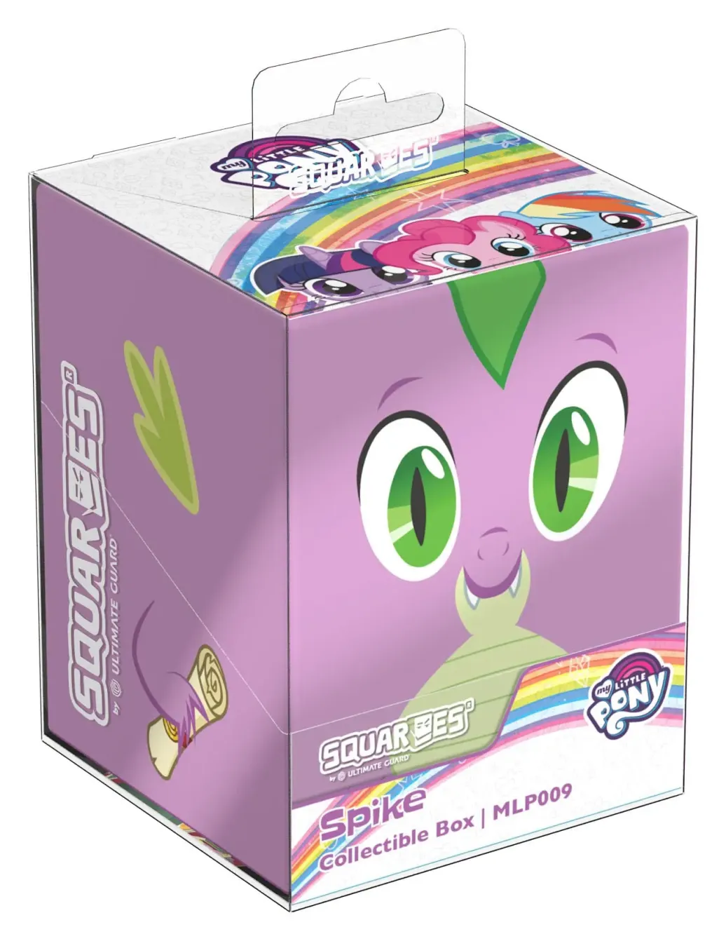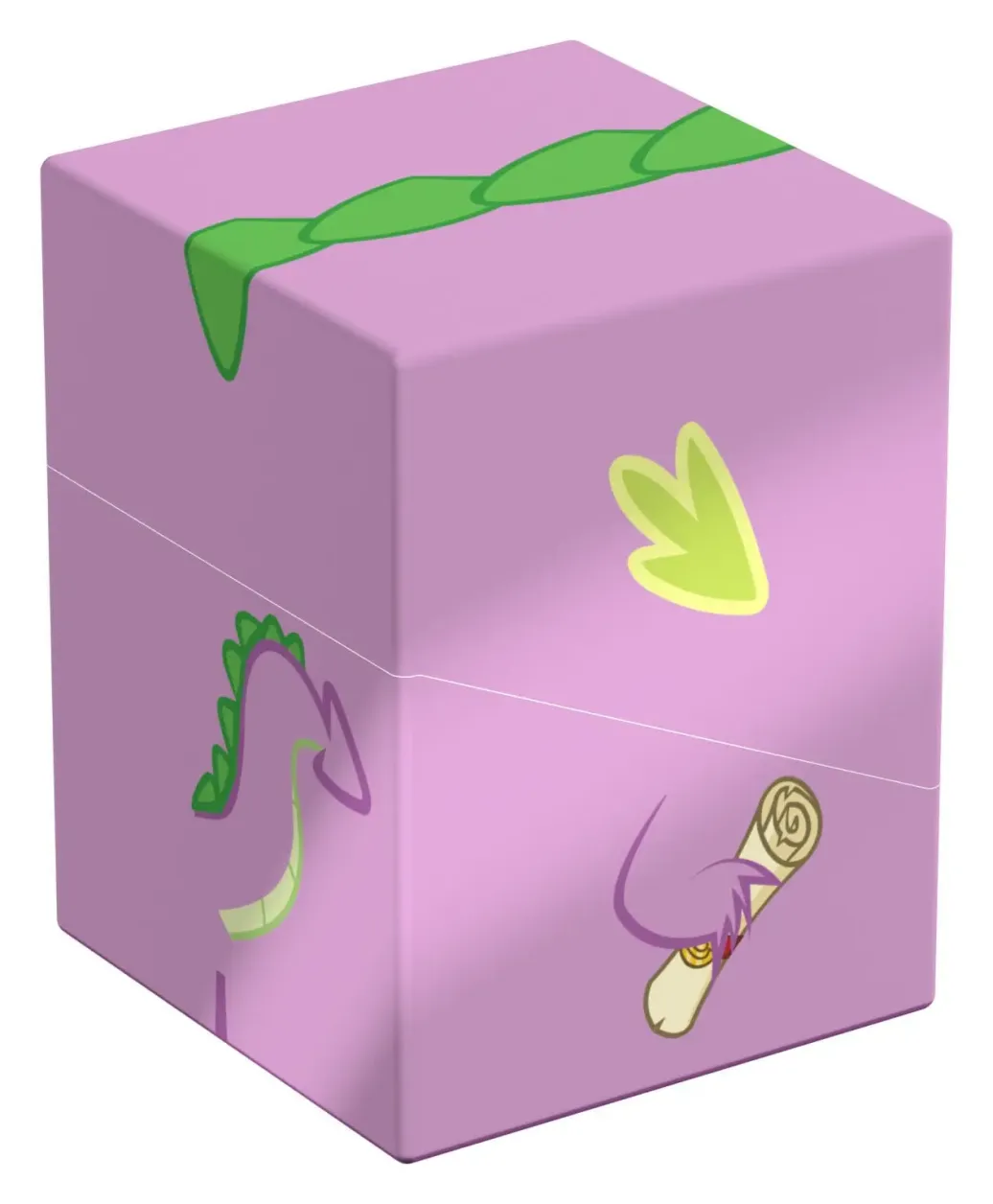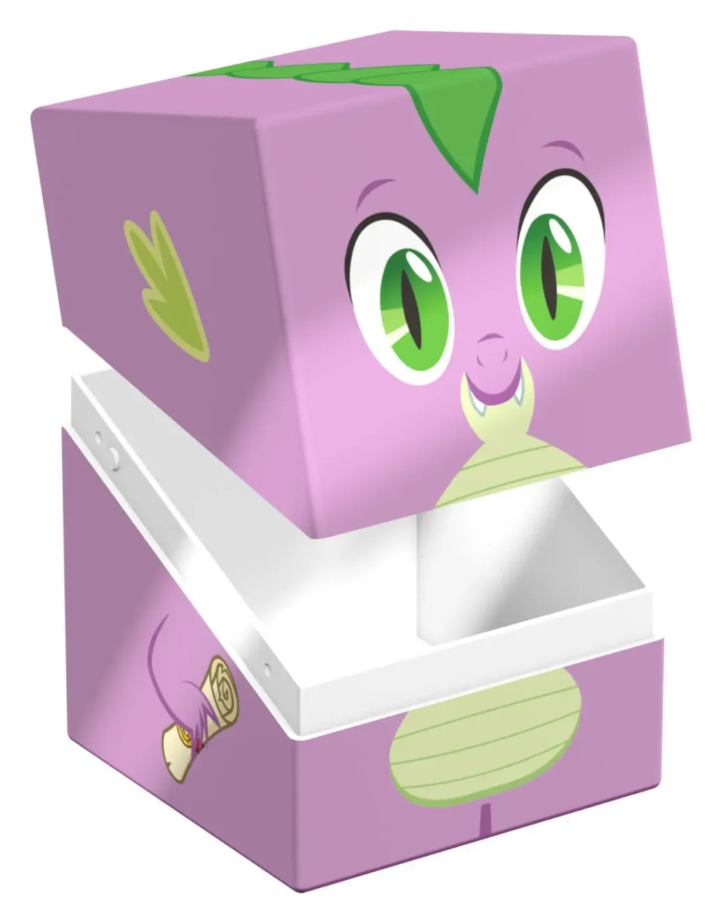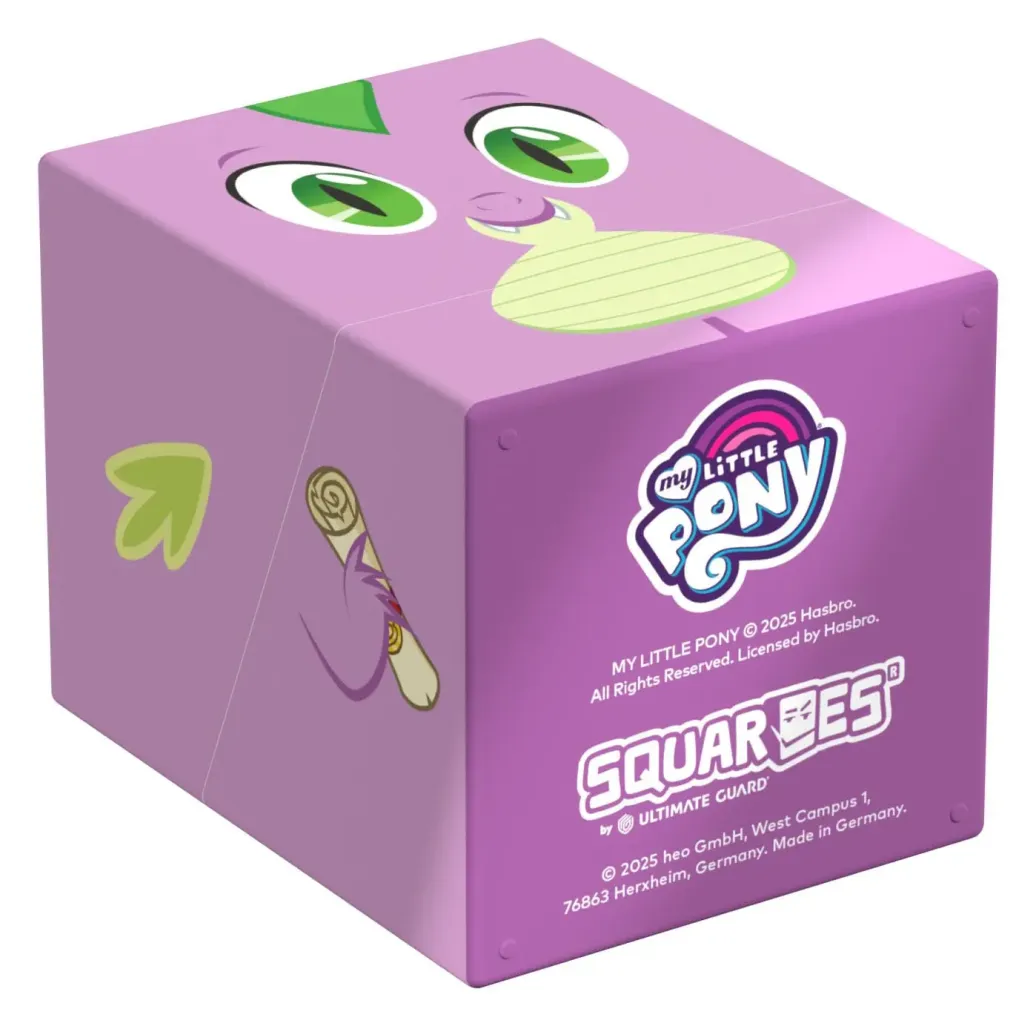 Sammelbare Box zur Aufbewahrung von TCG-Decks, Tabletop-Zubehör und/oder Sammlerstücken. Der Spike Squaroe aus der My Little Pony "Friendship is Magic"-Edition bietet als Deck-Box benutzt Platz für bis zu 100 Spielkarten in doppelter Schutzhülle. Squaroes werden aus 78% erneuerbaren Rohstoffen hergestellt.