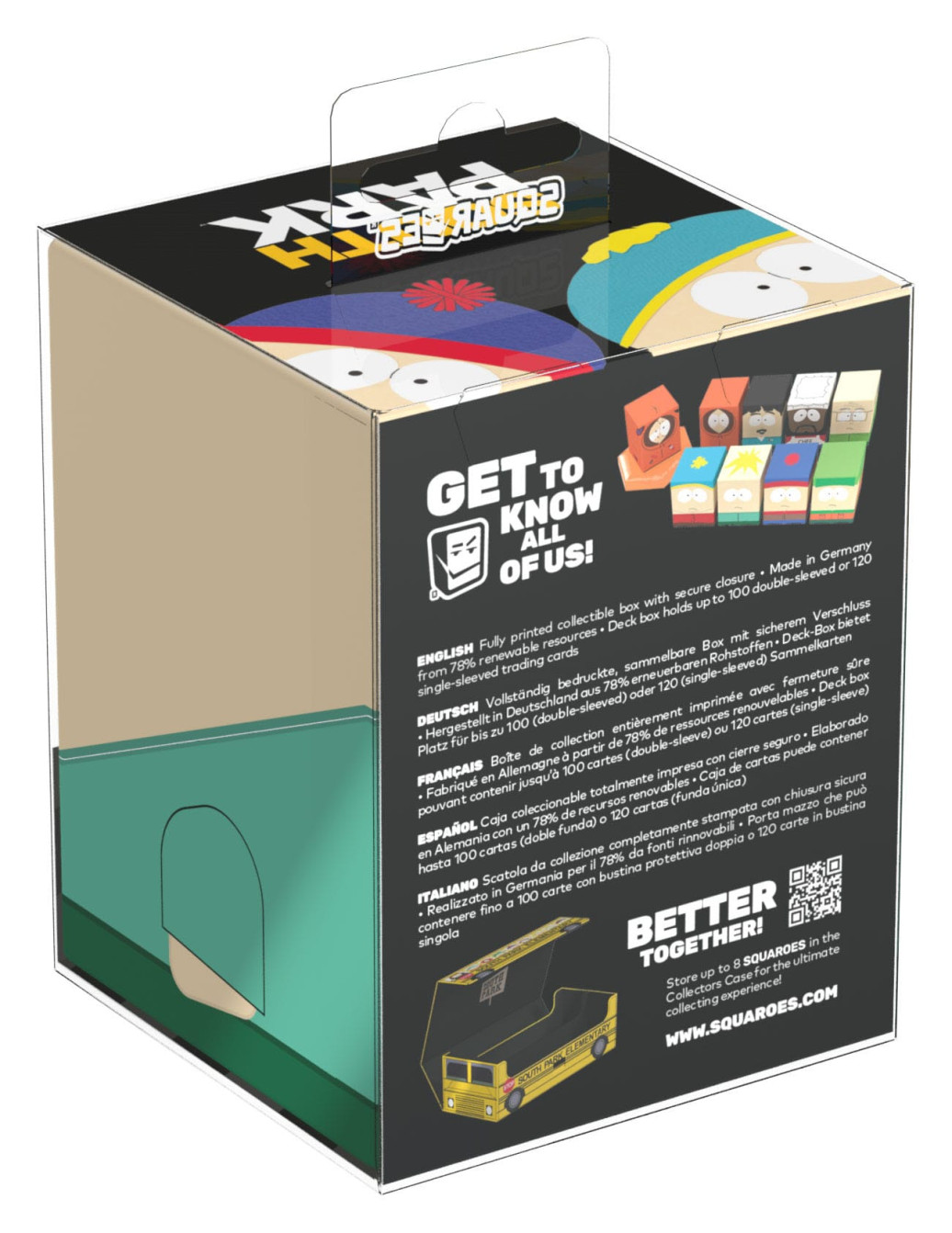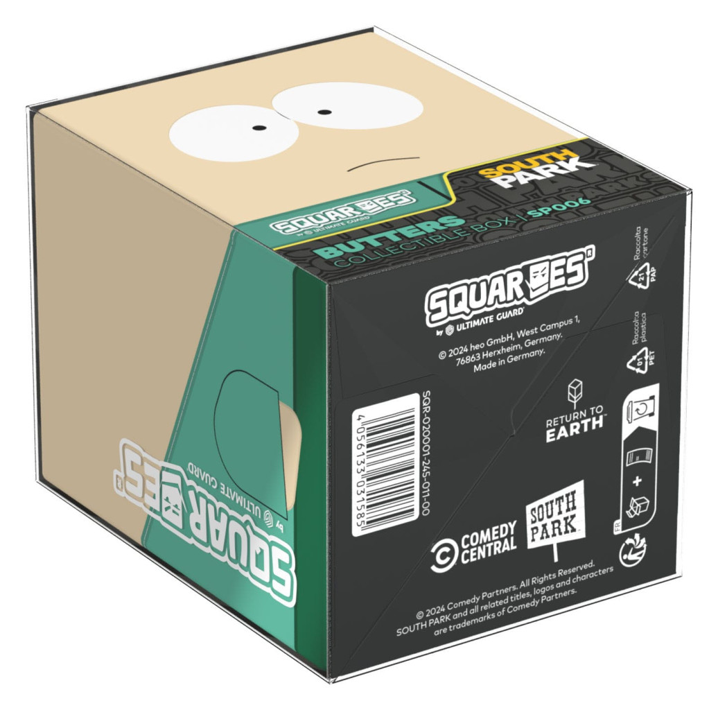 Sammelbare Box zur Aufbewahrung von TCG-Decks, Tabletop-Zubehör und/oder Sammlerstücken. Der Butters Squaroe aus der South Park™-Edition bietet als Deck-Box benutzt Platz für bis zu 100 Spielkarten in doppelter Schutzhülle. Squaroes werden aus 78% erneuerbaren Rohstoffen hergestellt und passen perfekt in das separat erhältliche Collectors Case.